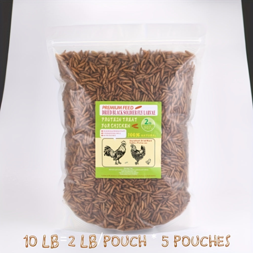 10LBS Dried Black Soldier Fly Larvae, High Protein Chicken Feed, 5 packs