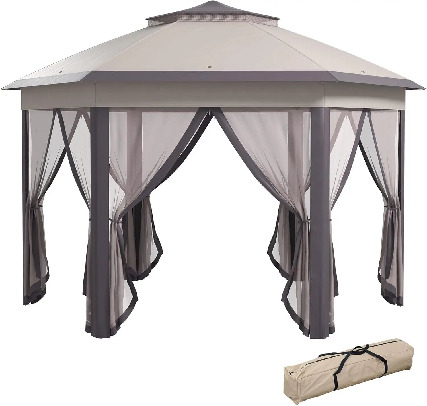 13' x 13' Pop Up Gazebo, Hexagonal Canopy Shelter with 6 Zippered Mesh Netting, Event Tent with Strong Steel Frame for Patio