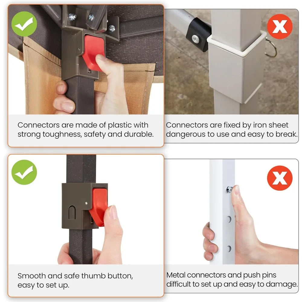 The six mesh sidewalls offer full protection from sun, light rain, and insects while allowing fresh air to circulate. Its double-vented roof design enhances airflow and reduces wind pressure. With a quick pull-and-latch mechanism, the height can be adjusted between 8.7′ and 9.4′ to suit various needs and occasions.
