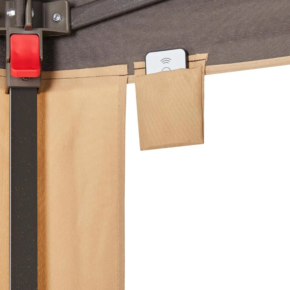 Transform your outdoor space into a stylish retreat with this 13x13ft hexagonal pop-up gazebo. Designed for both function and flair, it features 25 built-in solar-powered LED lights to add a soft, ambient glow at night. The lights can be charged via the built-in solar panel or powered by a power bank (not included) and are easily controlled with a remote.