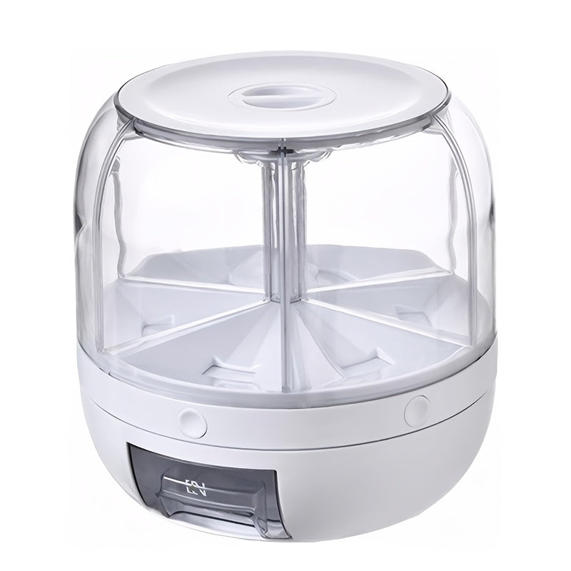 1pc Large Capacity 6 Grain Dispenser with Lid - Moisture-Proof & Insect-Proof, Rice Bucket with 360° Rotating Design - Perfect for Rice, Grains, Cereals, Flour, Mini Candies - Durable Plastic, Transparent Drawer, Easy Dispensing, also Pet Food.
