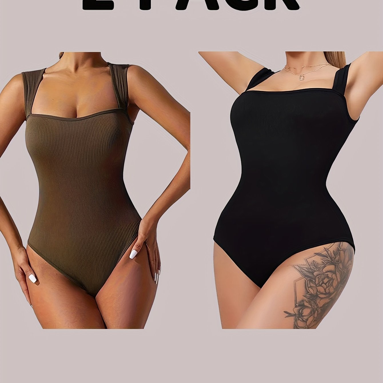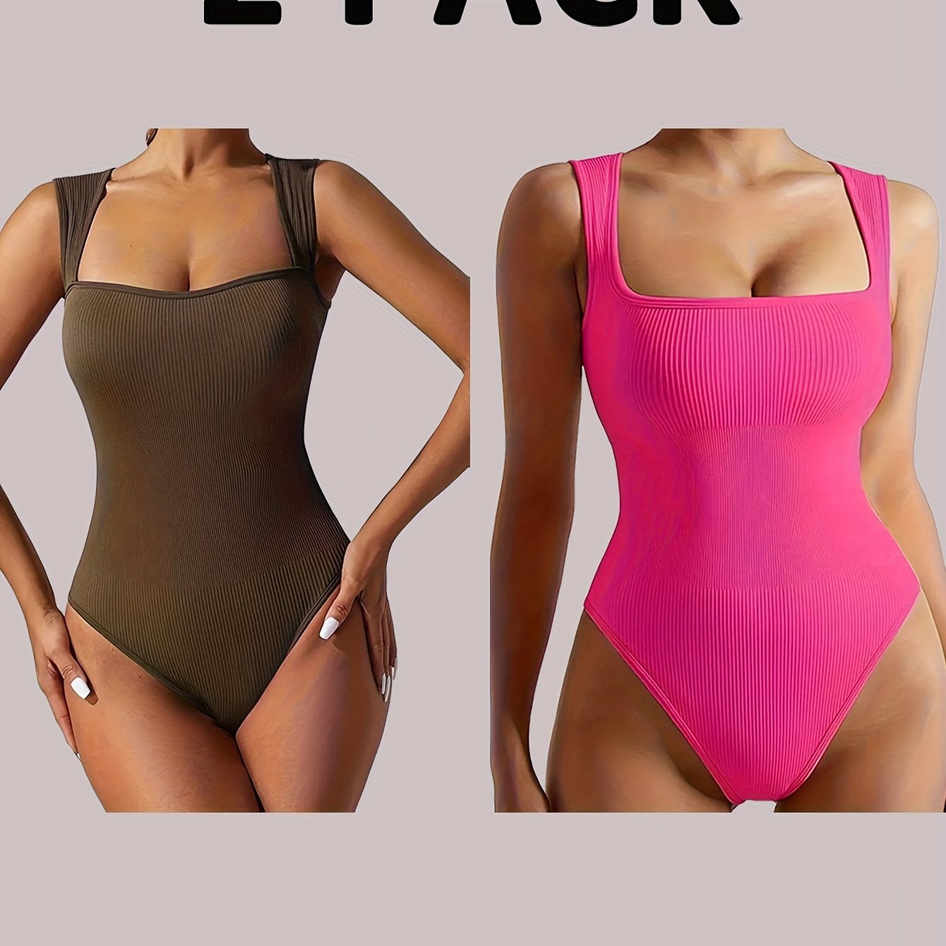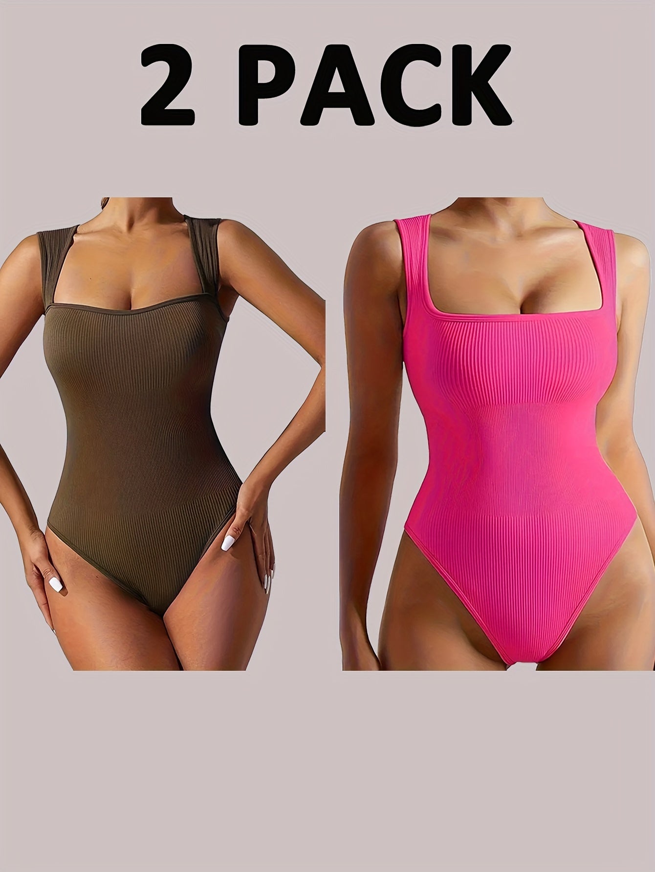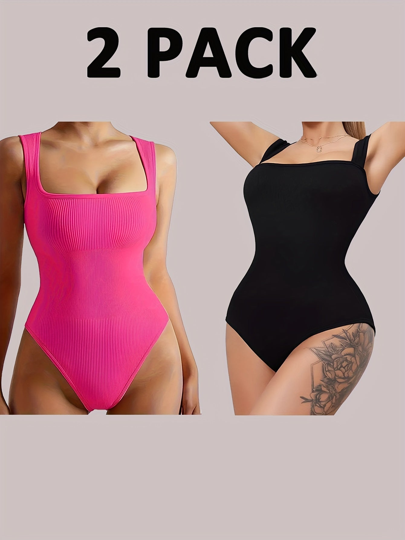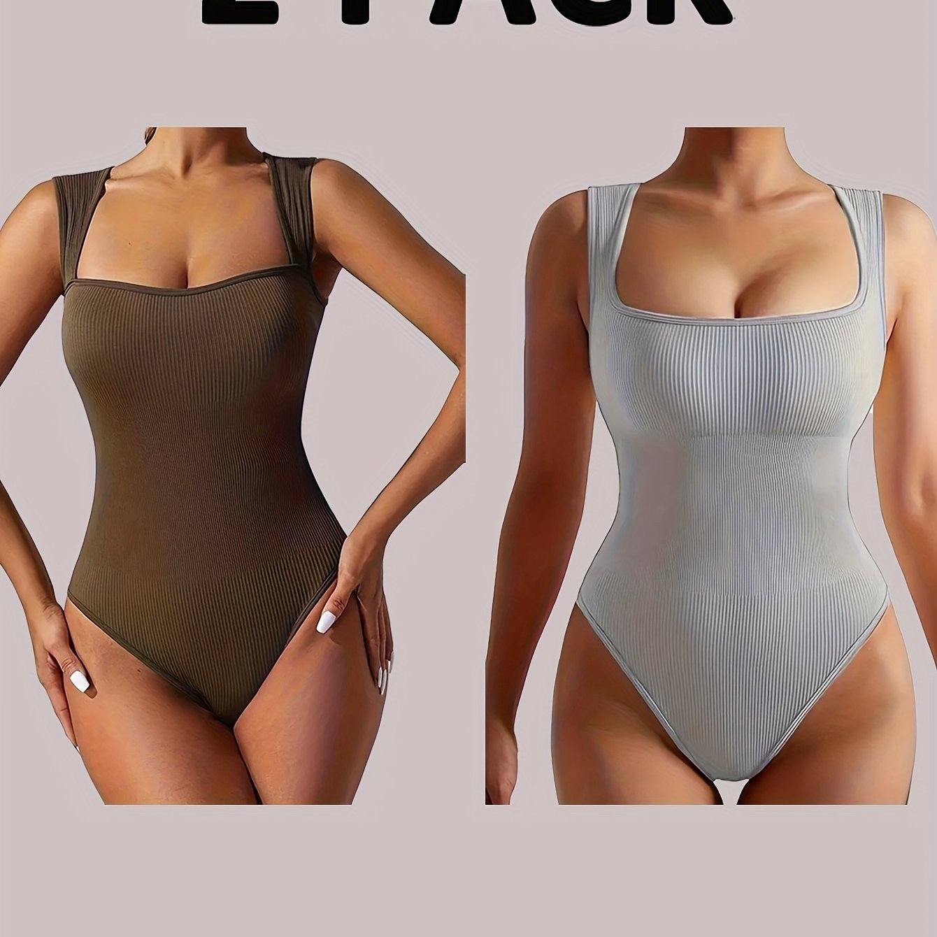 2 Pieces Women's Seamless Sexy Sleeveless Square Neck Bodysuit Tummy Control Ribbed Going Out Bodysuit Tops
