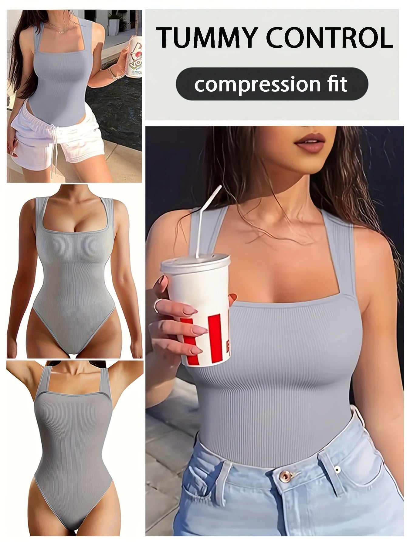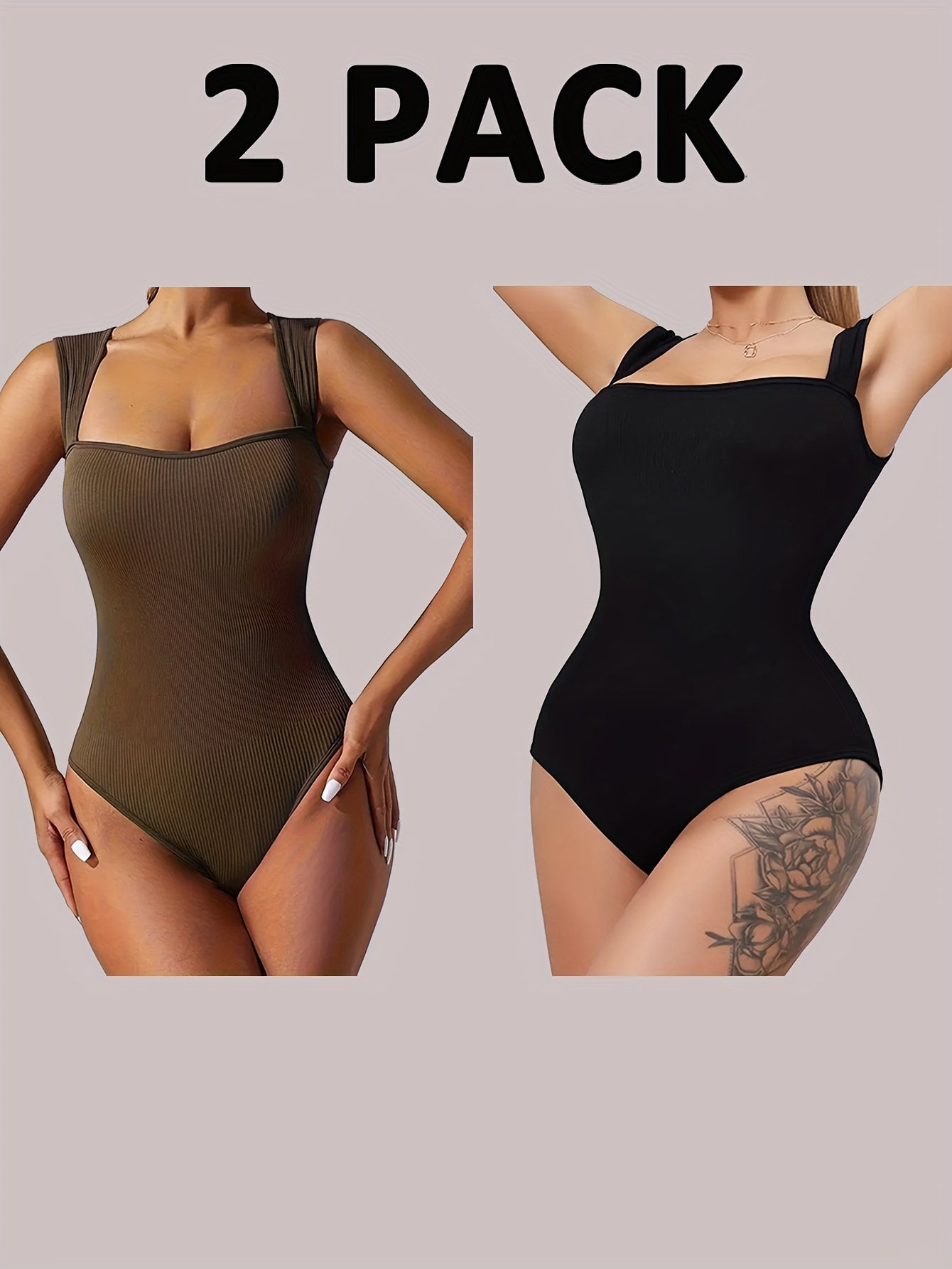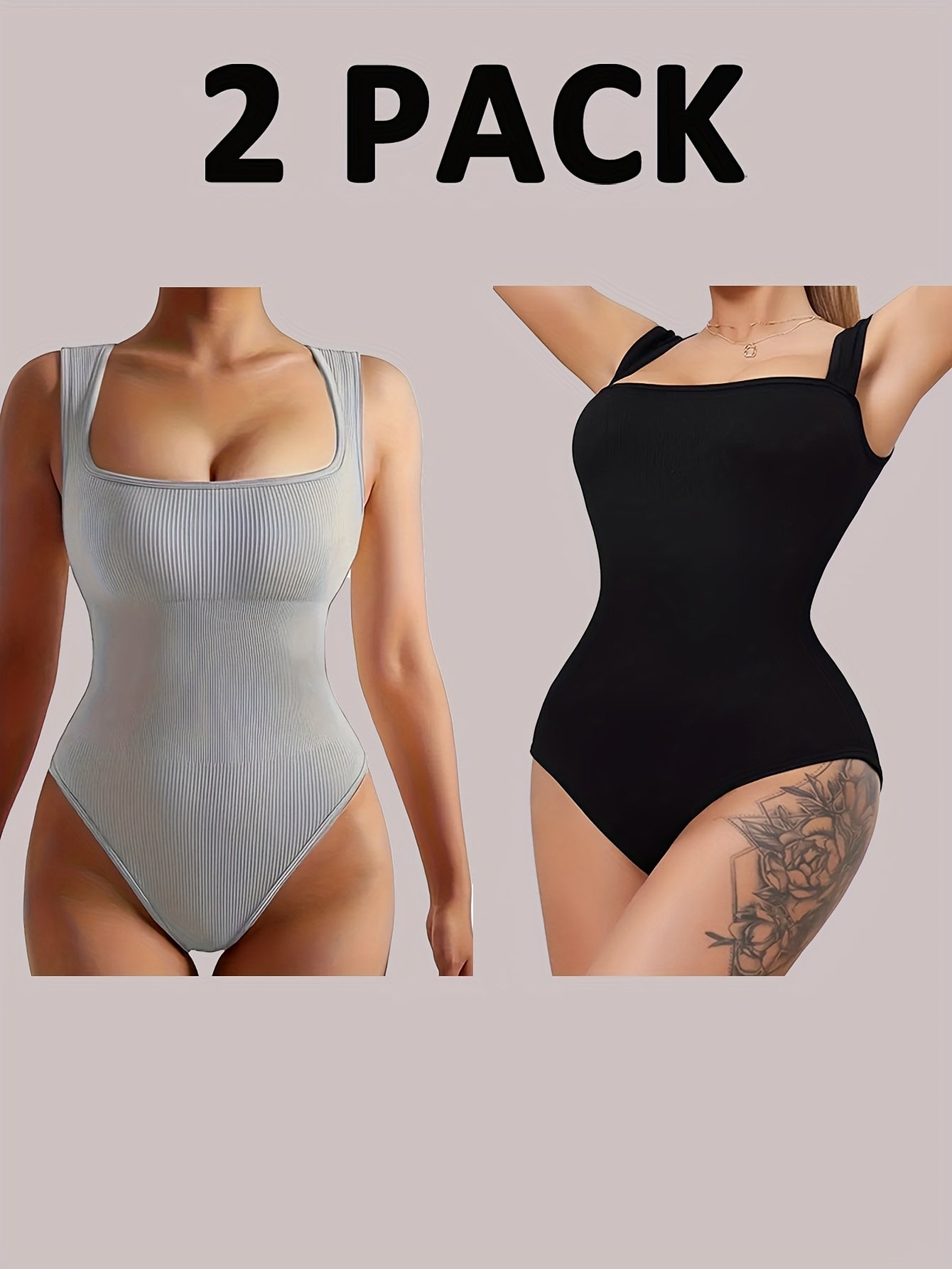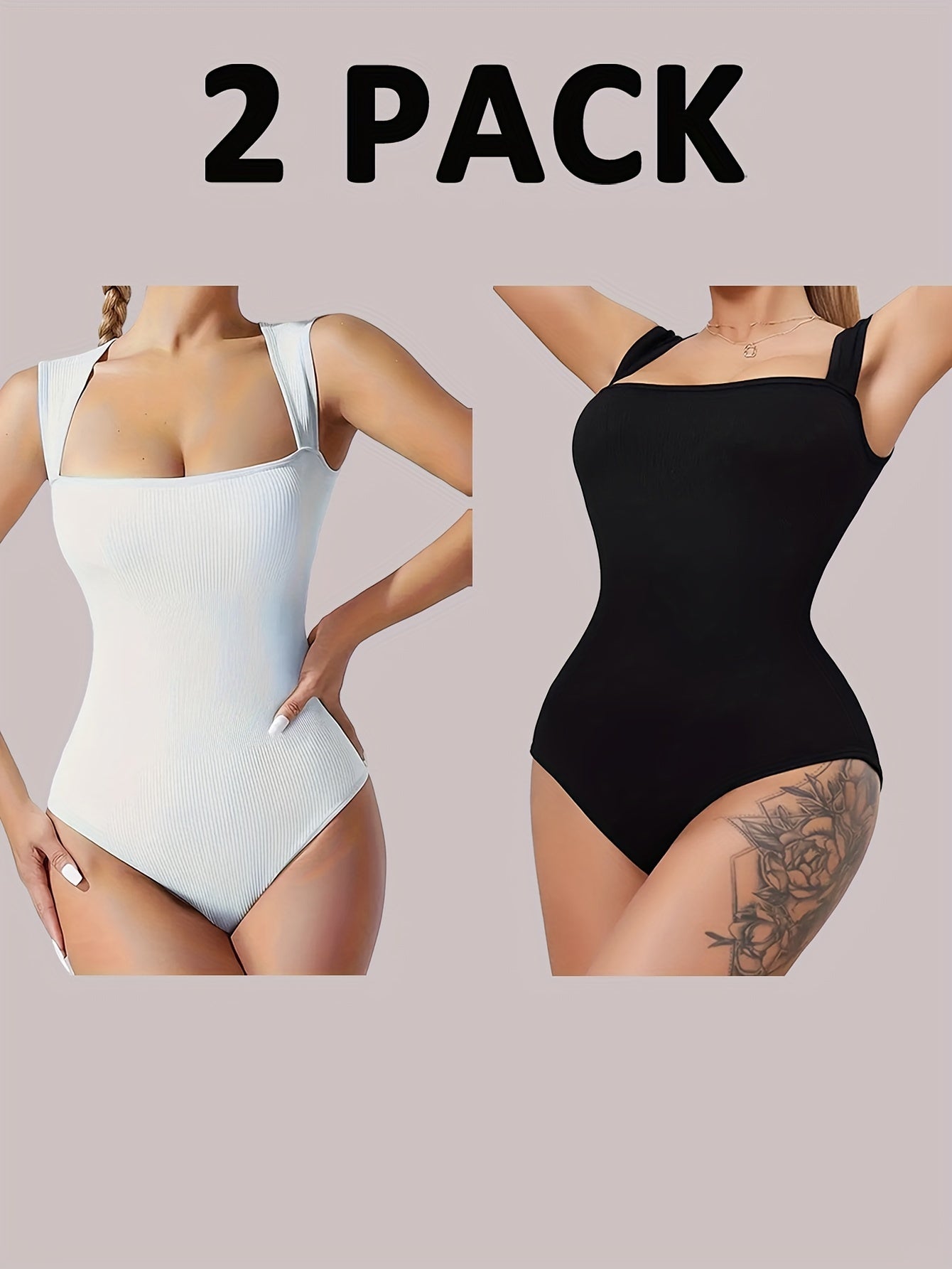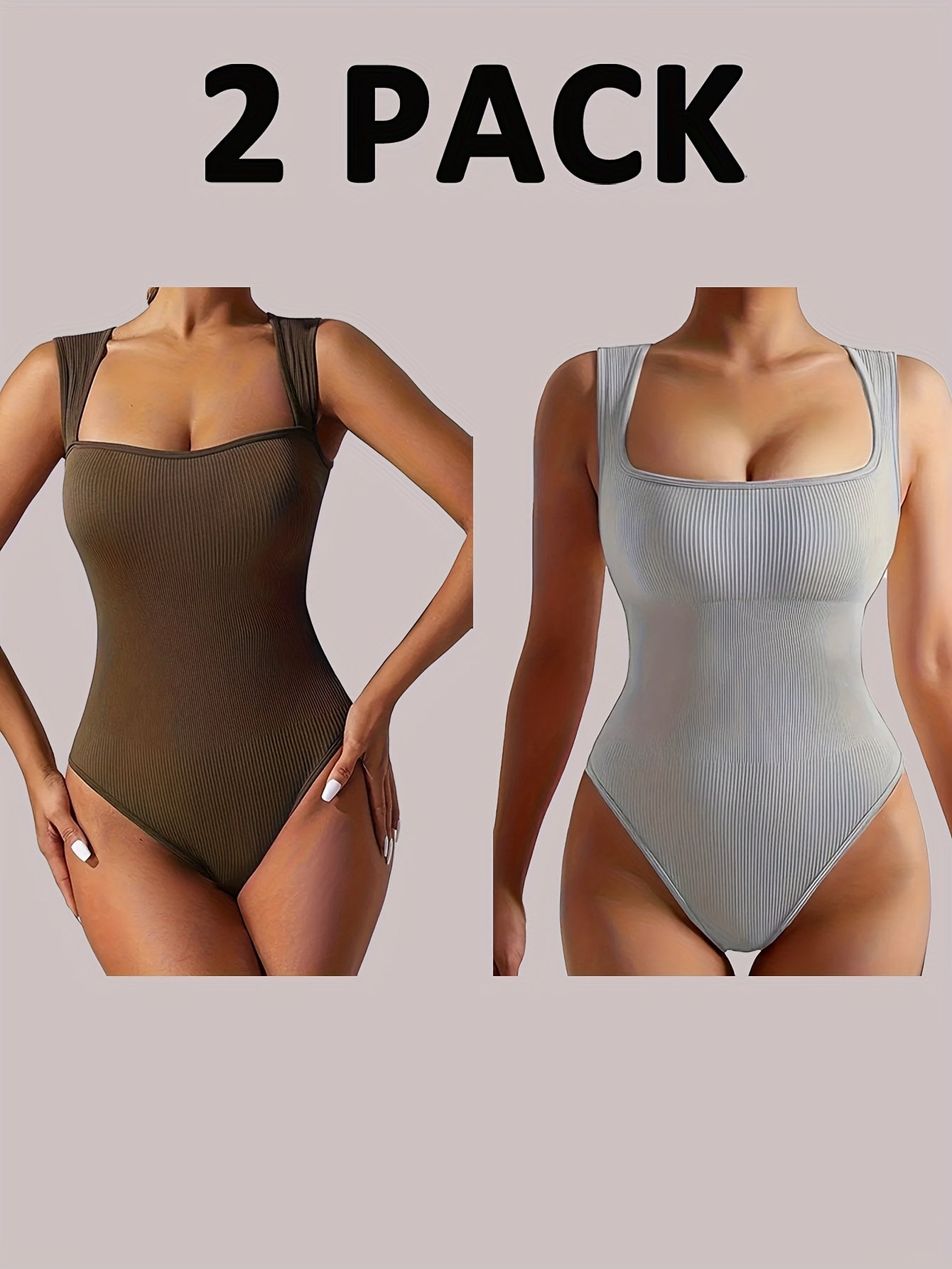 2 Pieces Women's Seamless Sexy Sleeveless Square Neck Bodysuit Tummy Control Ribbed Going Out Bodysuit Tops