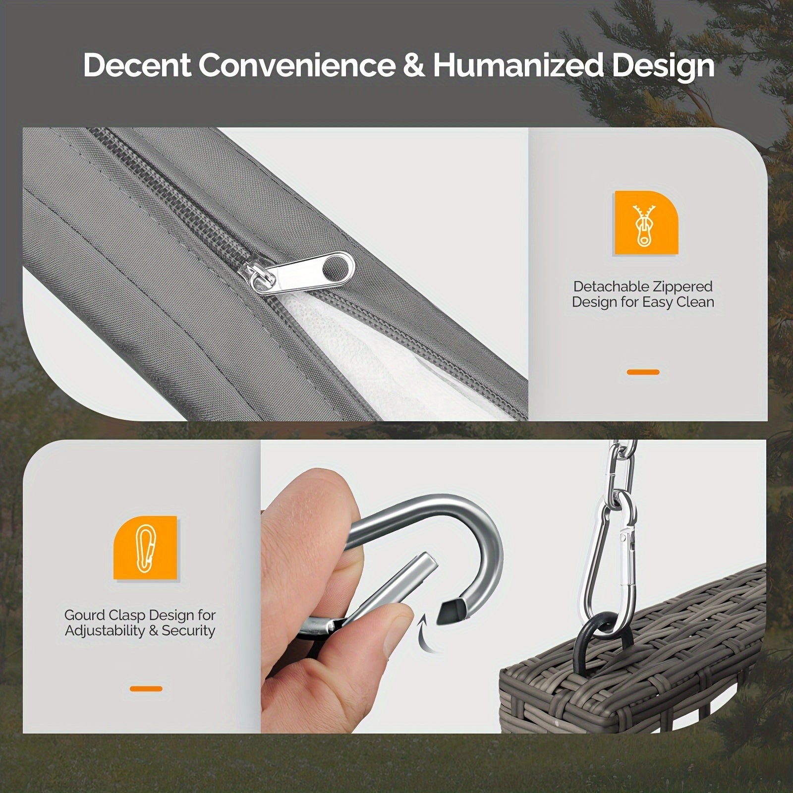 1. Material: Iron, PE rattan, Polyester fabric, PP cotton