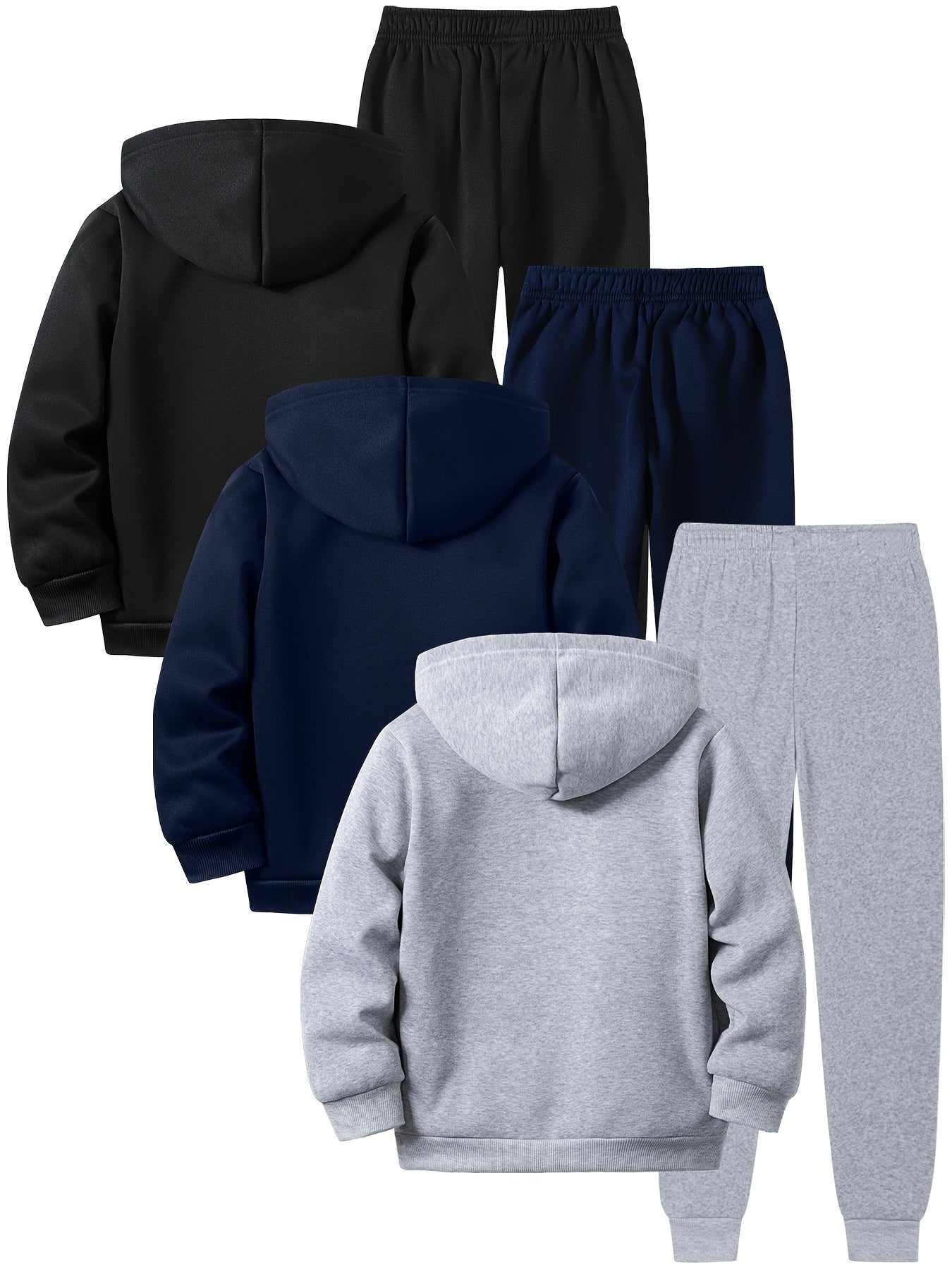 3 Sets Kid's Fleece Lining Long Sleeve Hooded Jacket & Loose Pants.