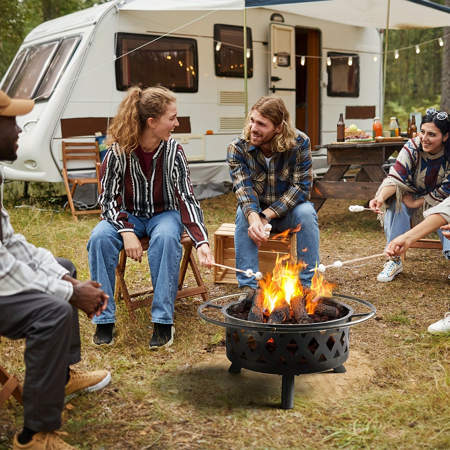 The fire pit is built from heavy-duty material materials that can be used for a long time