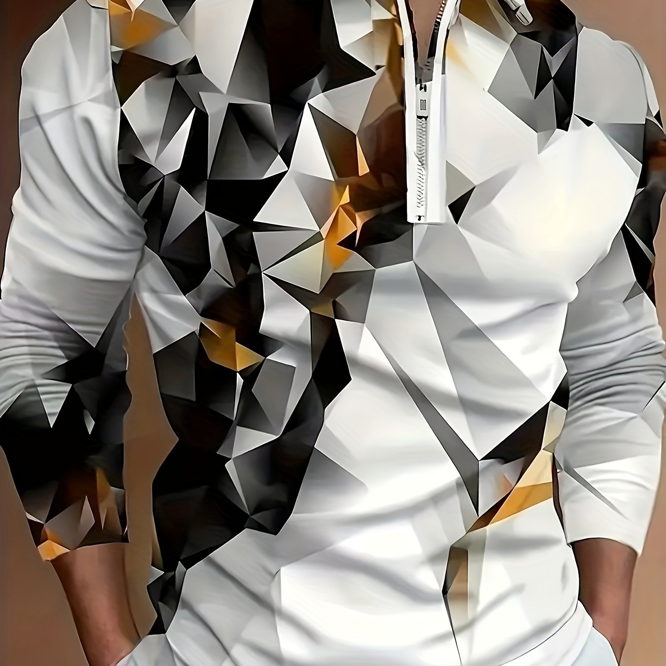 3D Men's Long Sleeved Golf Shirt Lapel Collar Metal Zipper Casual And Fashionable Men's Clothing