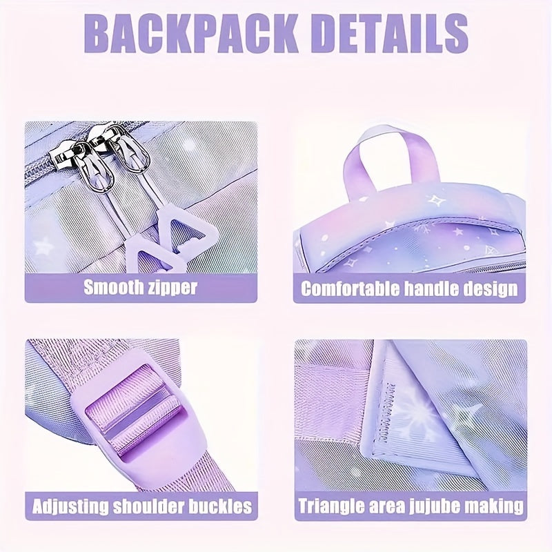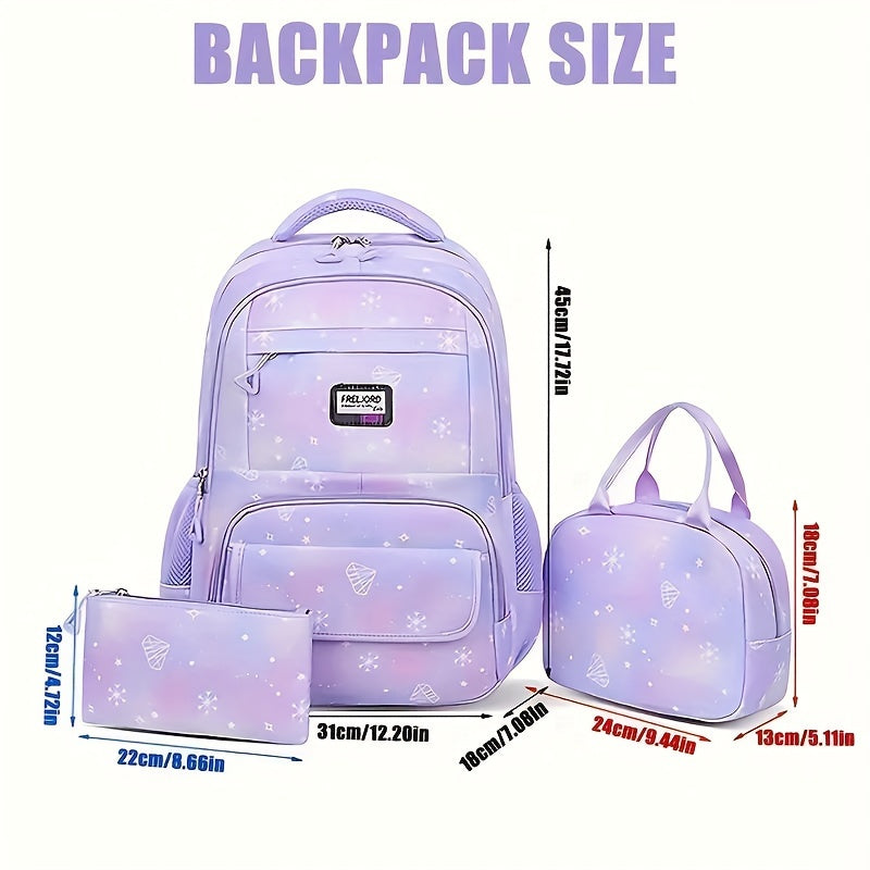 3pcs Preppy Style Nylon Backpack Set, Water-Resistant Lightweight Travel Bag with Adjustable Straps, Polyester Lined, Includes Lunch Box & Pencil Case, Multi-Pocket Design for College and Outdoor Use, Travel Backpack Kit Preppy Style Bags Water-resistant
