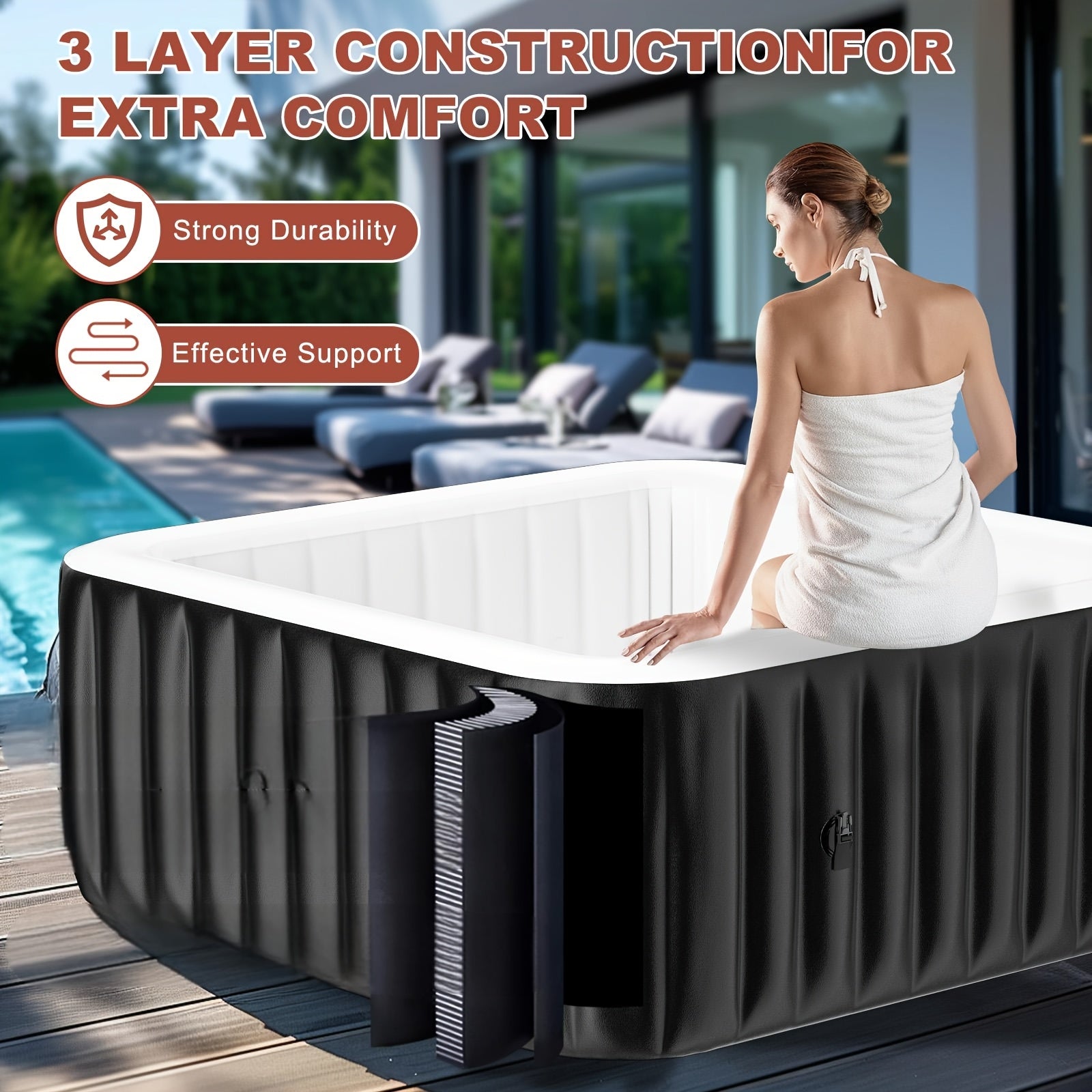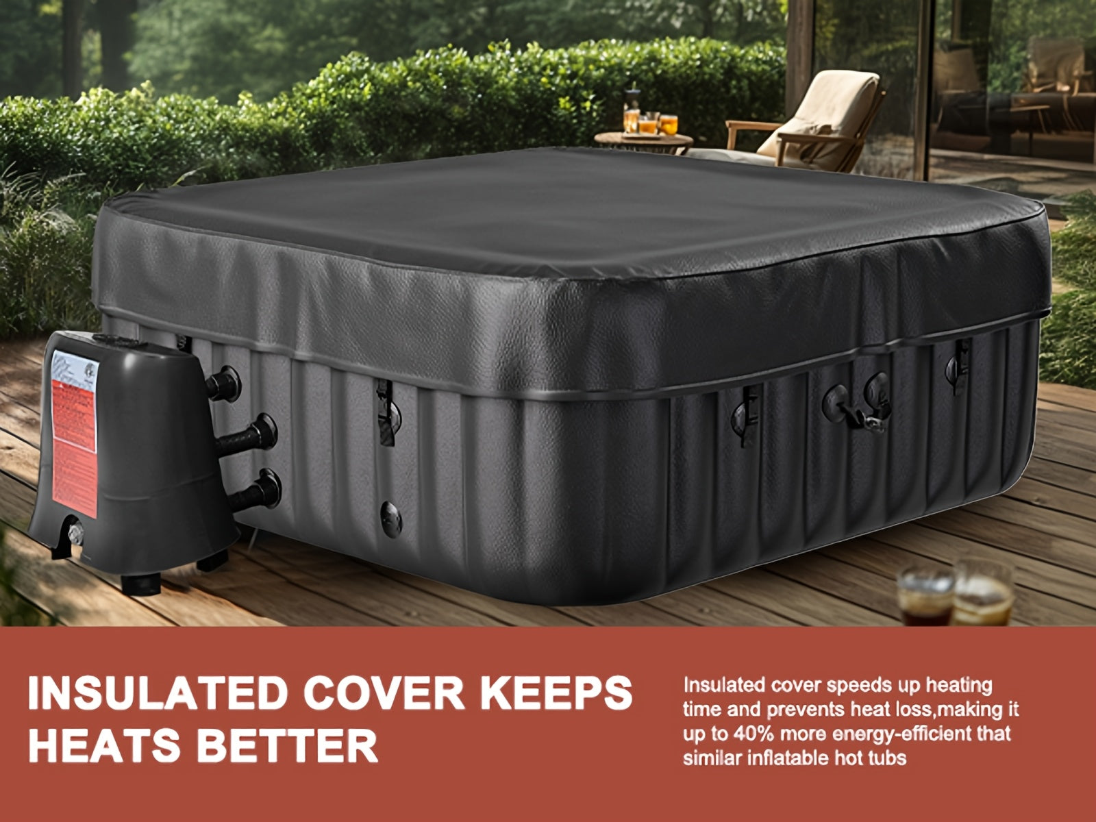 Includes heater pump, filter, and spa cover for added convenience and hygiene