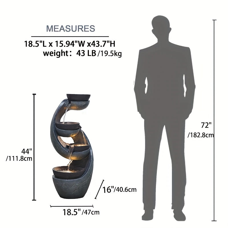 - 4-tier cascading waterfall design for a tranquil atmosphere