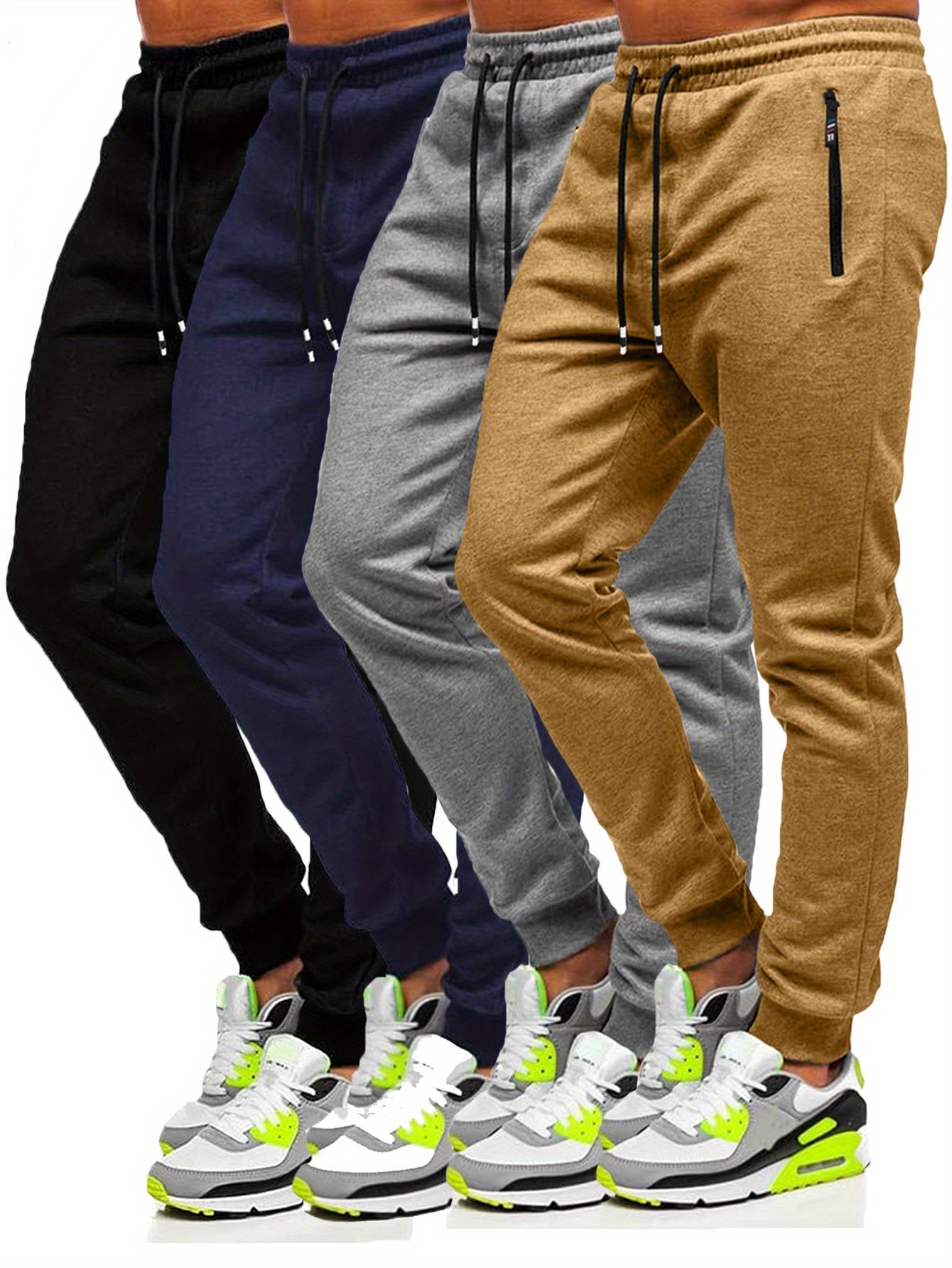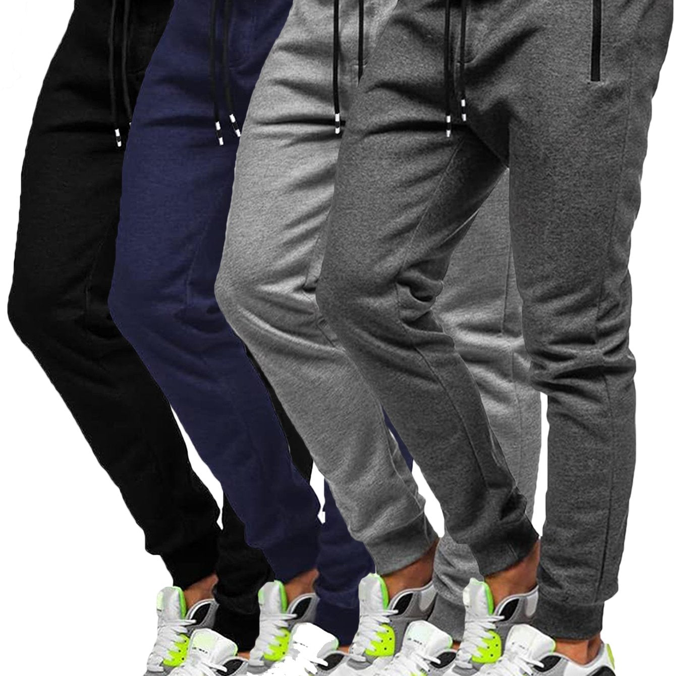 4pcs Men's Slim Fit Jogging Sweatpants w/ Zippered Pockets,