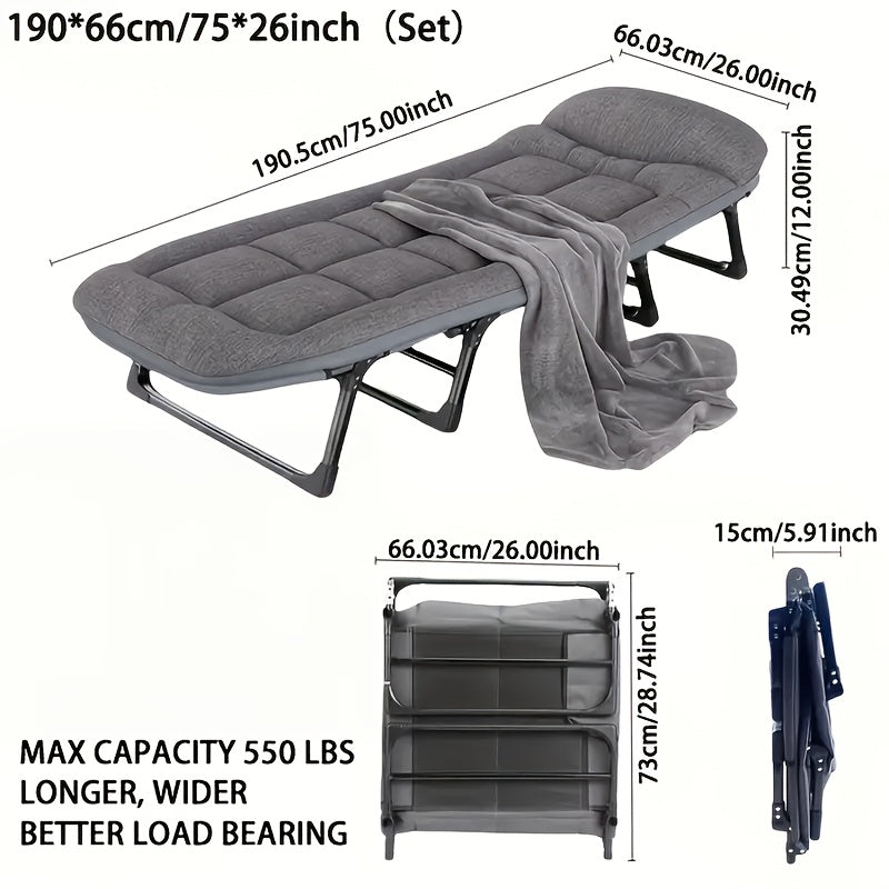 75-inch adjustable folding bed with breathable fabric, mattress, and pillow