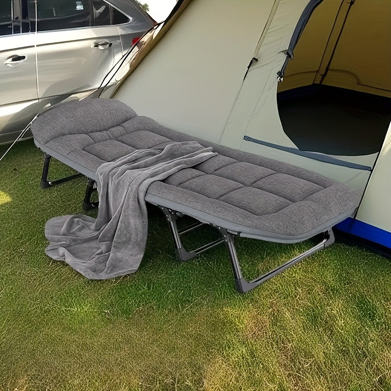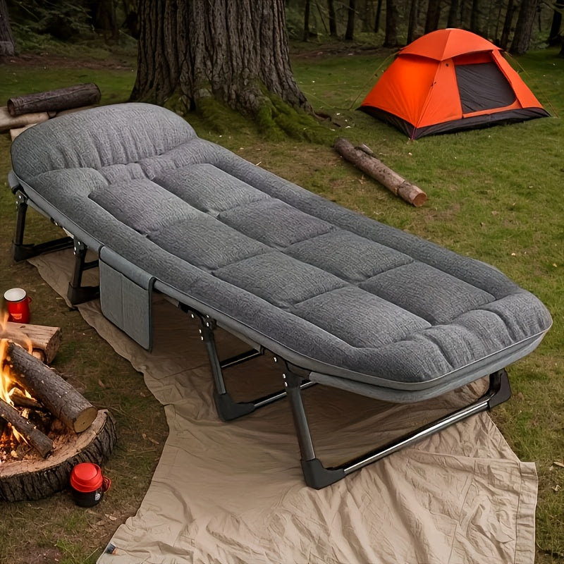 75-inch adjustable folding bed offers a portable and comfortable sleeping outdoors.