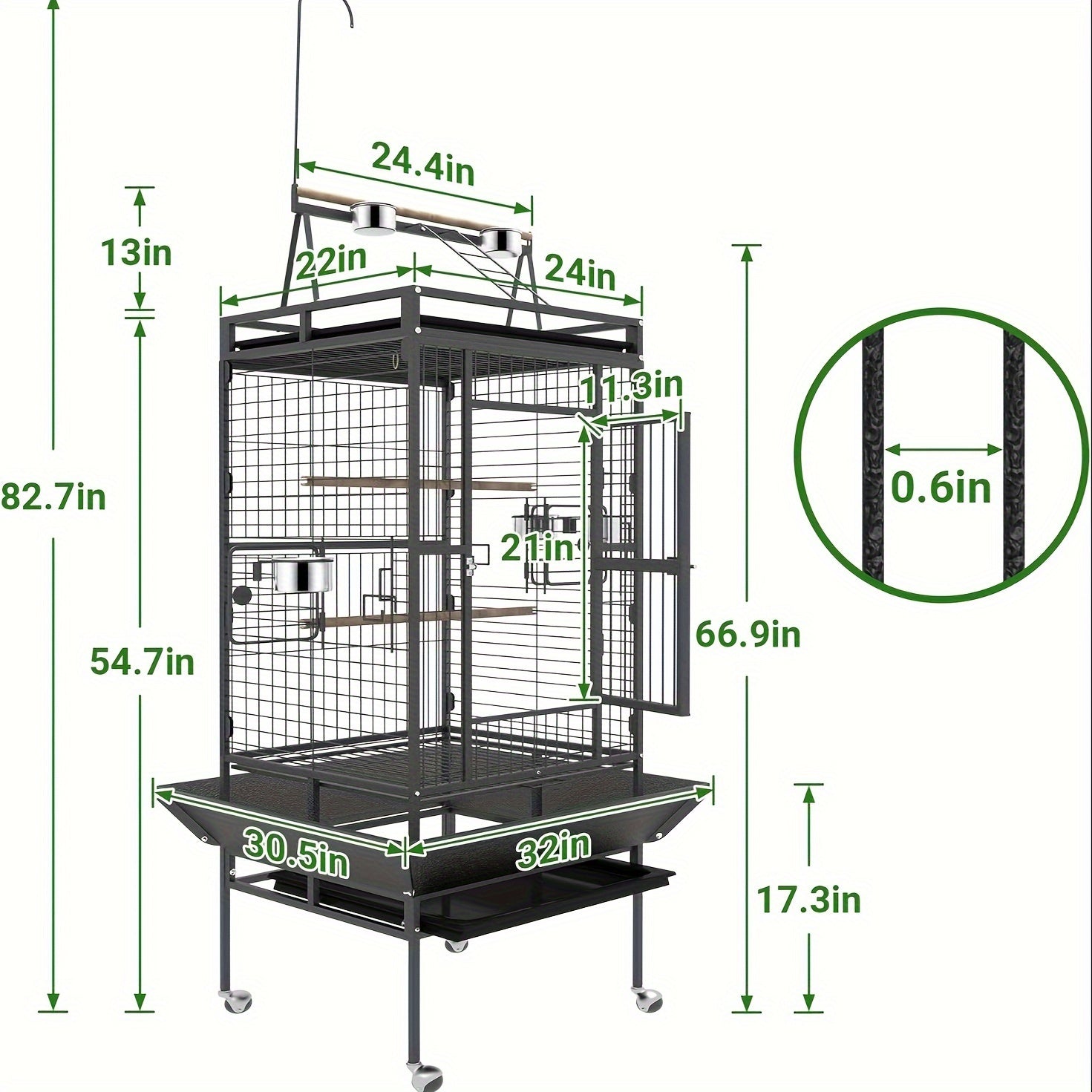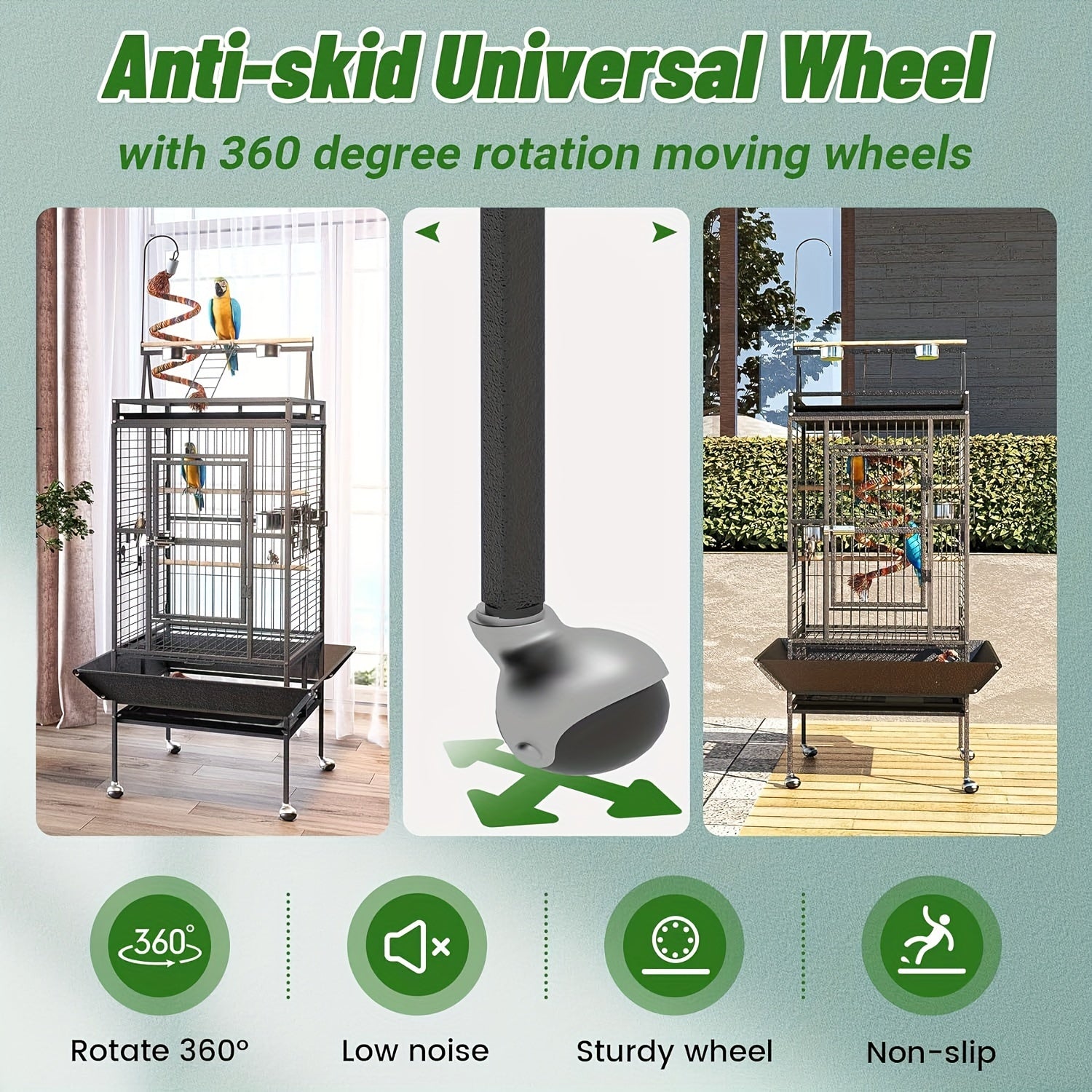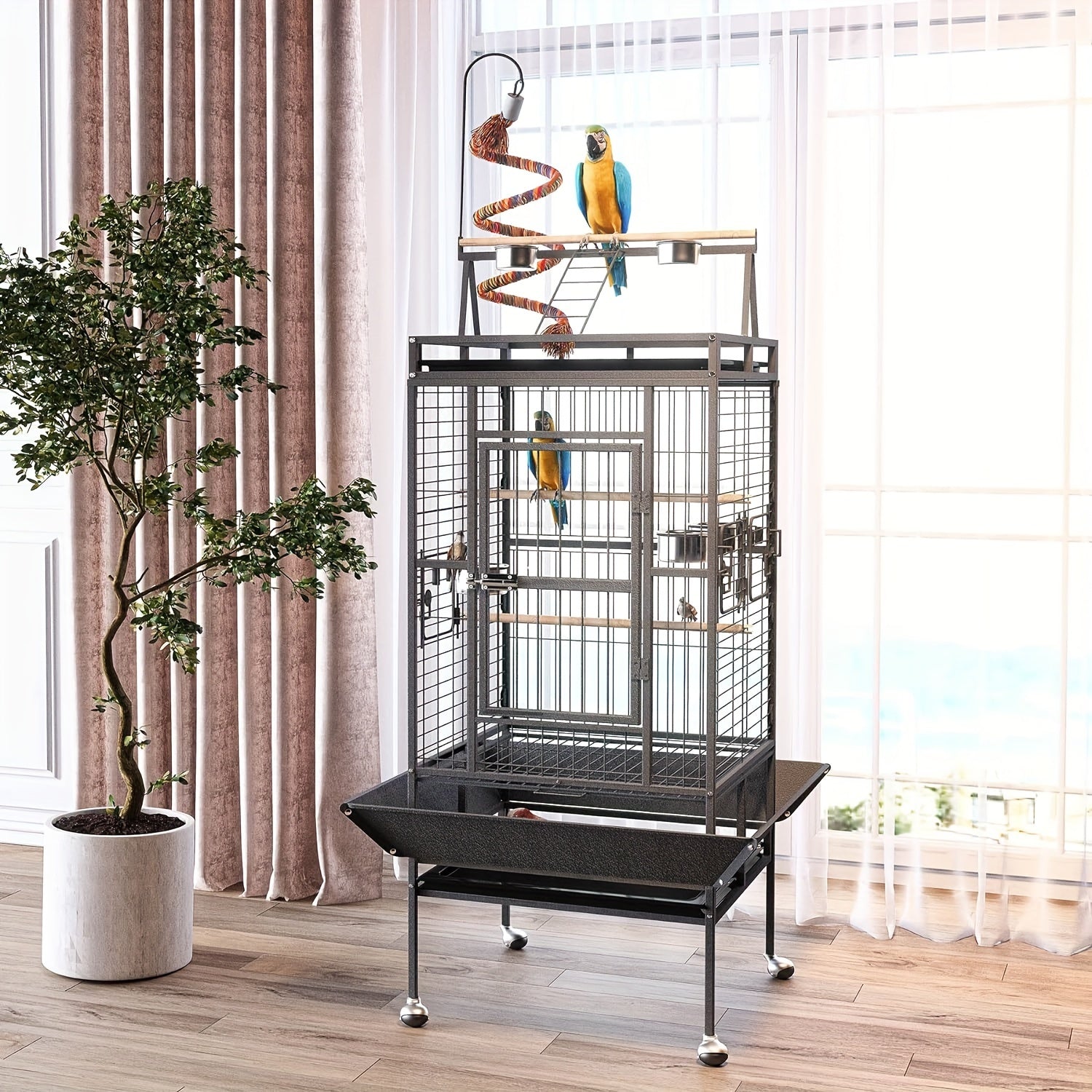 82.7 Inch Wrought Iron Bird Cage, Parrot Flight Cage With Rolling Stand, Play Top & Bottom Tray For Parakeet, Lovebirds, Ringneck, Cockatiels