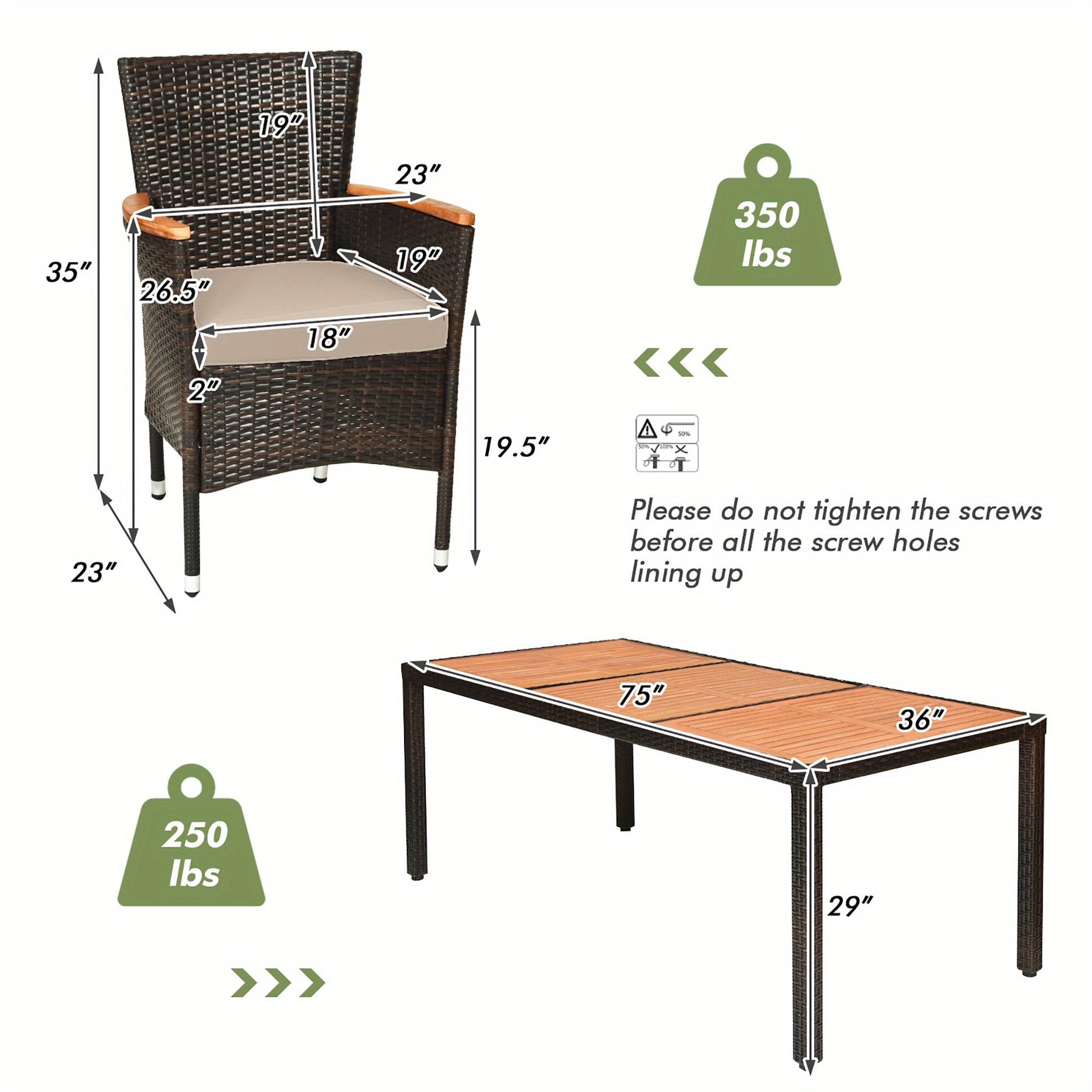 Still Worried About Not Having Enough Space For All Your Guests? This 9-piece Outdoor Dining Set Will Be A Good Choice! Our Set Contains 1 Large Table Made From Quality Acacia Wood And 8 Comfortable Rattan Chairs Will Provide Your Guests With Plenty Of Space To Eat Delicious Food And Enjoy A Relaxing Time Chatting With Friends At The Same Time. Made From Solid Acacia Wood And Weather-resistant Wicker, This Outdoor Furniture Set Is Suitable For Outdoor Locations Such As Patios, Gardens, Poolside And Backyards. In Addition, The Waterproof Cushions With Smooth Zips Can Be Easily Removed For Easy Maintenance. Features: Large Tabletop Offers Spacious Space For All Your Guest