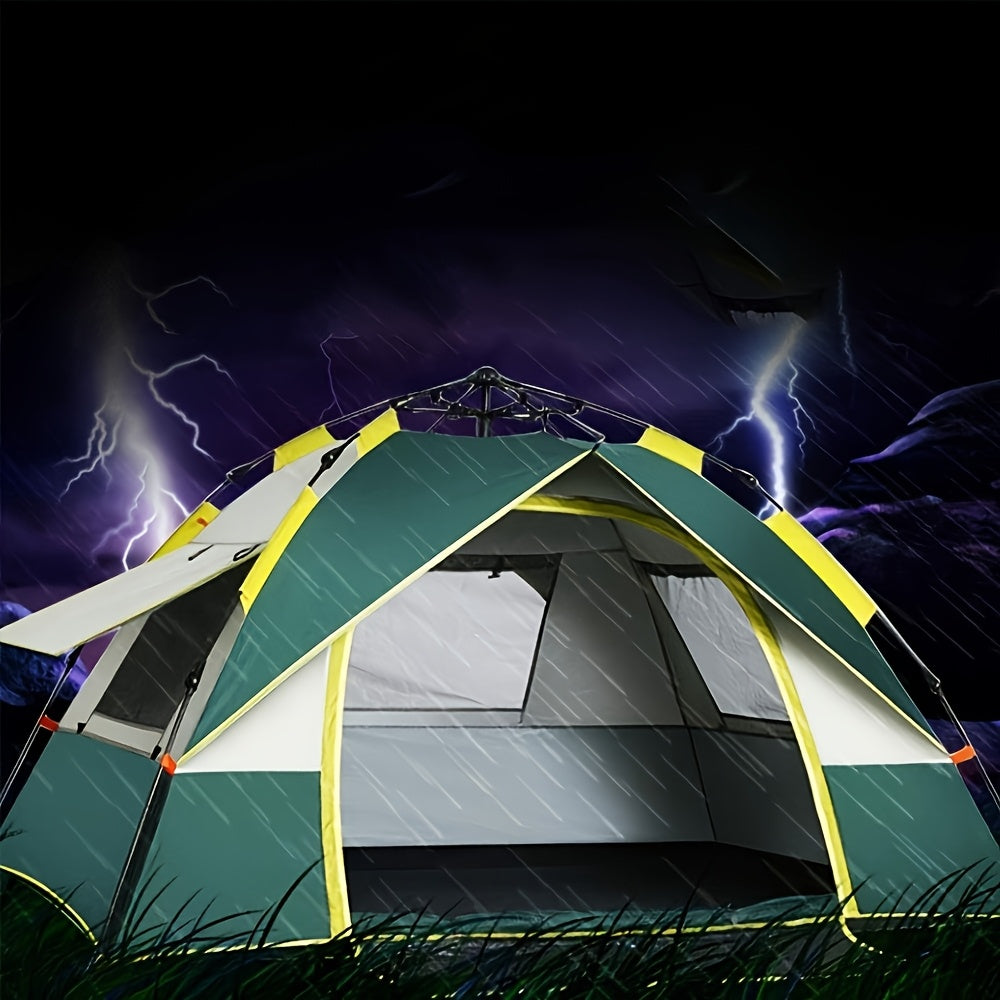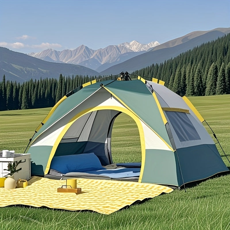 Experience hassle-free outdoor adventures with this automatic pop-up tent, designed for quick setup and reliable protection in any season. Built with sturdy glass fiber poles and durable nylon fabric, it provides a spacious interior for up to 4 people. The fully waterproof rainfly, UV-resistant material, and mosquito-proof mesh ensure comfort and safety, whether you’re camping, relaxing at the beach, or enjoying a day at the park.