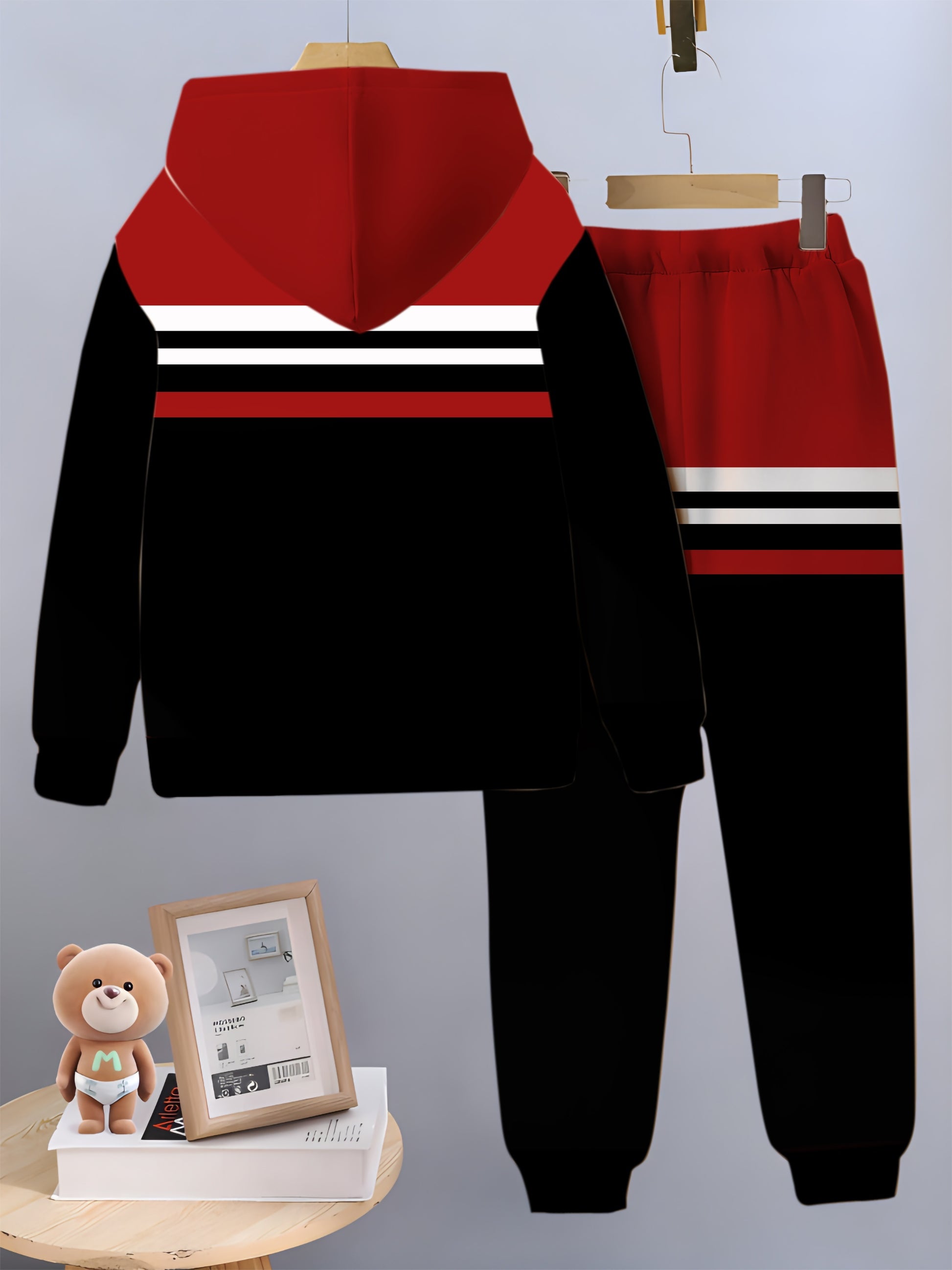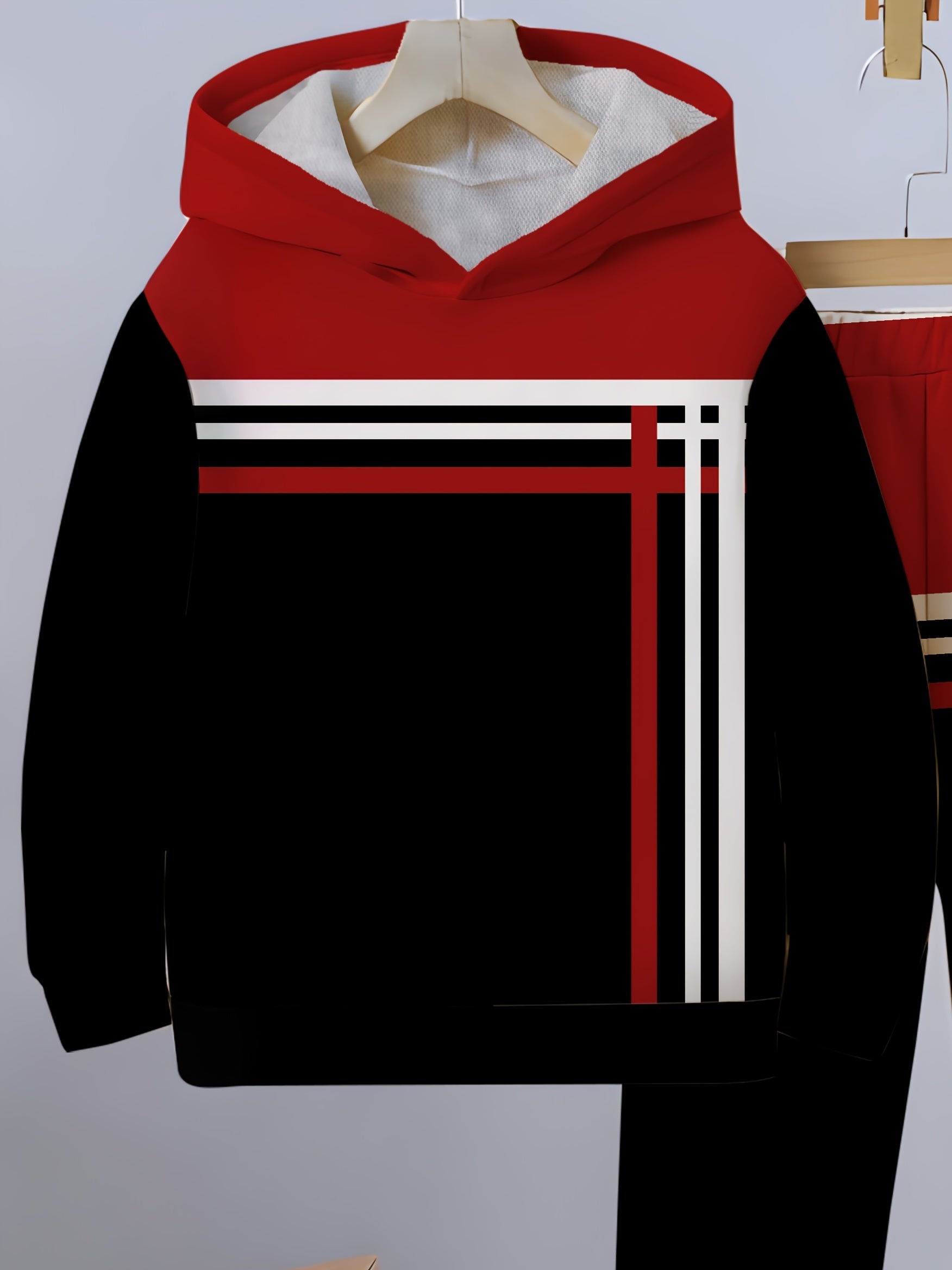 Keep your child stylish and comfortable with this Boys' 3D Geometric Print Casual Outfit. This matching set includes a long-sleeve hoodie and pants, designed with a trendy geometric pattern. Made from a soft polyester-spandex blend, the fabric offers a slight stretch for a relaxed fit, perfect for active kids. The pullover hoodie and elastic waistband pants ensure easy wear, while the breathable knit fabric keeps them comfortable during spring and fall.