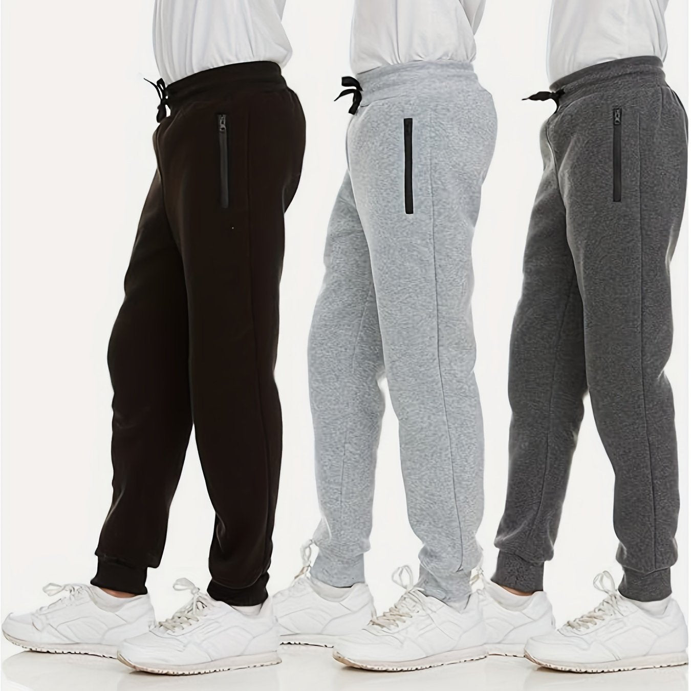 Boy's 3pcs Casual Cozy Cotton Cuffed Sweatpants With Drawstring And Zipper Pockets, Ideal For Daily, Outdoor And Sports Wear, Autumn And Spring Joggers For Boys