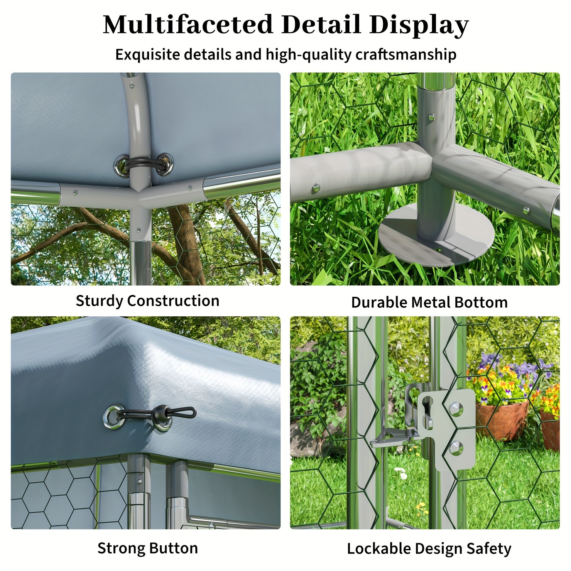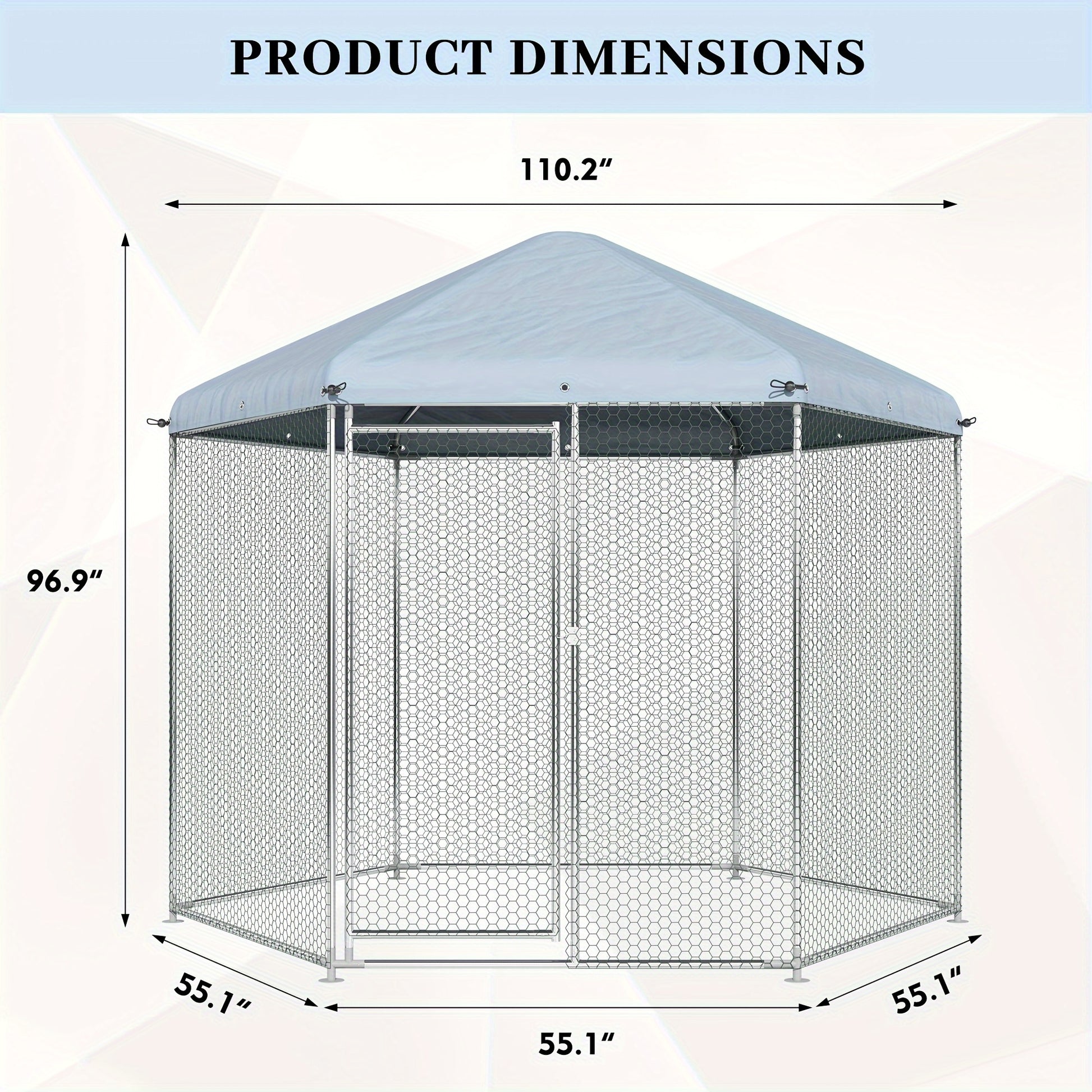 Polar Aurora Chicken Coop, Large Metal Chicken Run Pen Suitable For All Seasons, Walk In Chicken Coops For 6/10 Chickens, Hexagonal Chicken House With Waterproof & Anti-UV Cover For Backyard