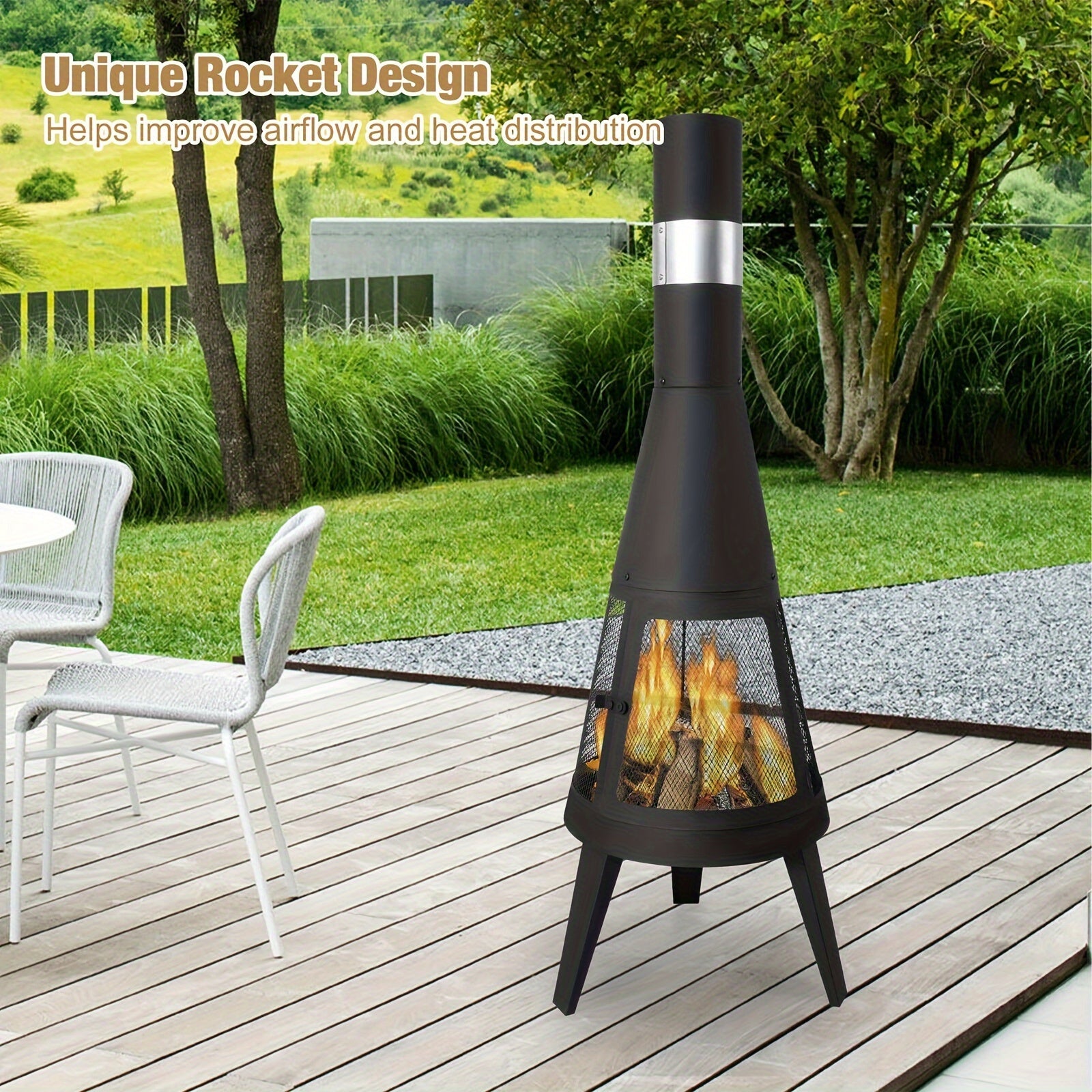 Cozy Patio Chiminea - Outdoor Wood Burning Fireplace, Log Grate, Metal Deck Heater with Real Flame Ambiance - Perfect for Backyard Gatherings and Chilly Nights
