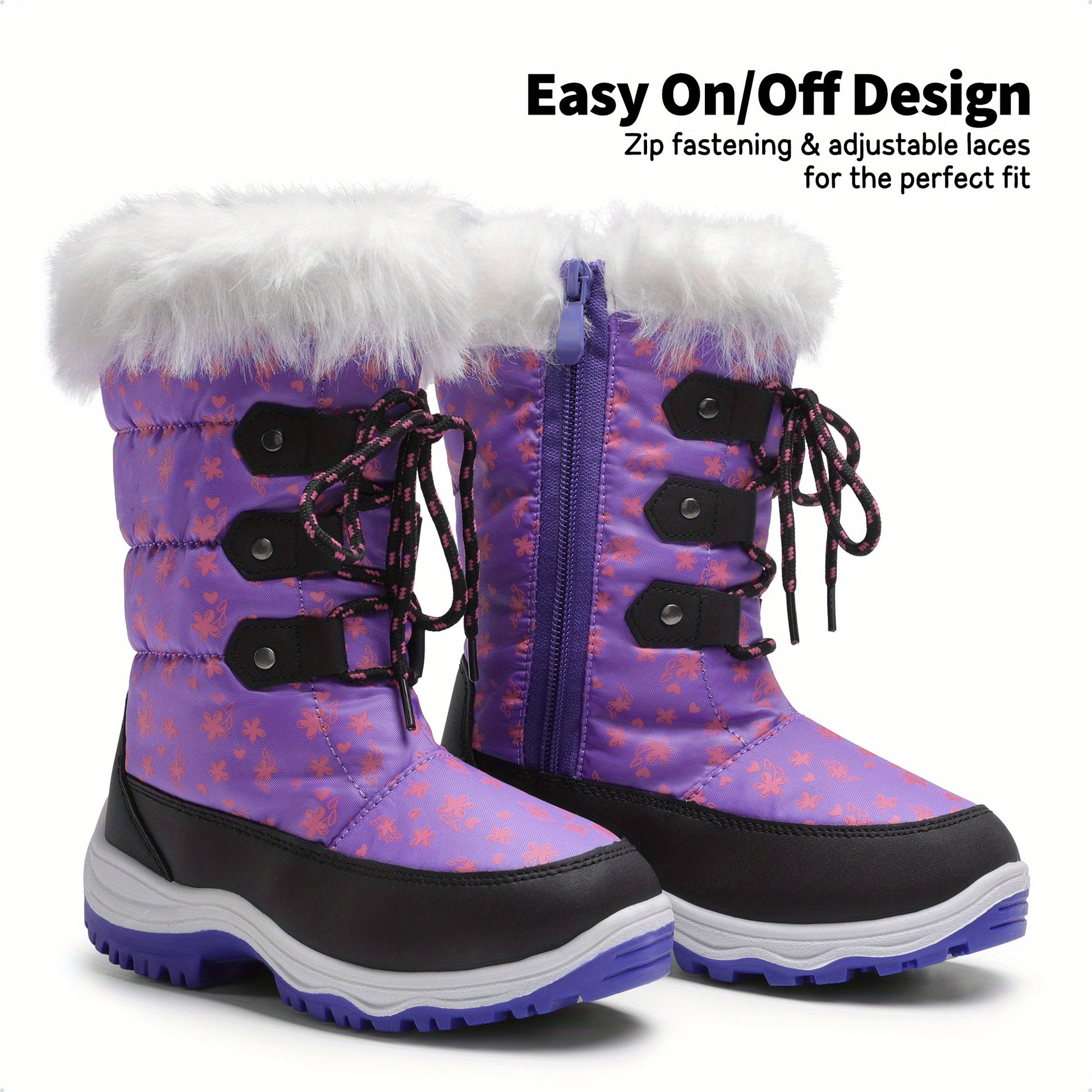 Kids Snow Boots, Warm & Cozy, Anti-Slip, Faux Fur Lining