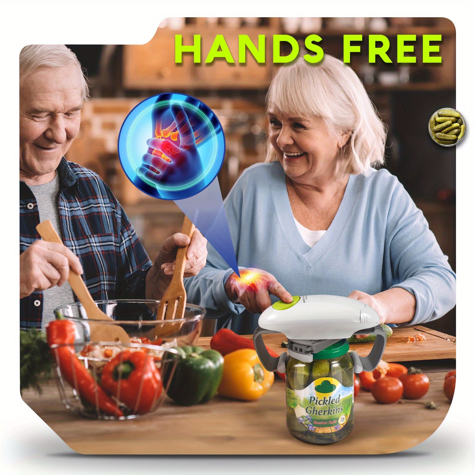 Simplify kitchen tasks with this electric jar opener designed for seniors, individuals with arthritis, or anyone with limited hand strength. This hands-free device fits most jar sizes (1.2"–3.5" lid diameter) and opens jars effortlessly with the push of a button—no twisting or pulling required.