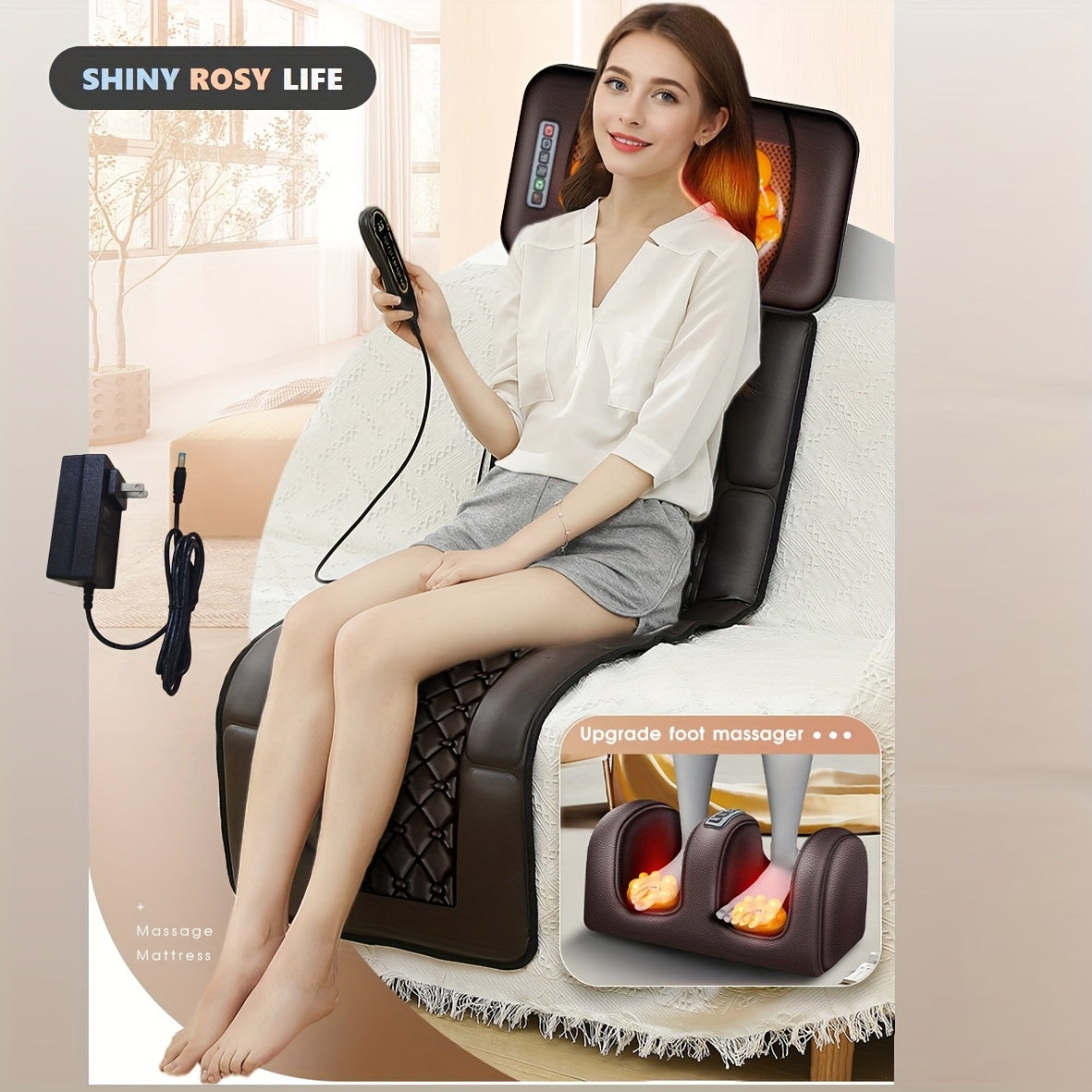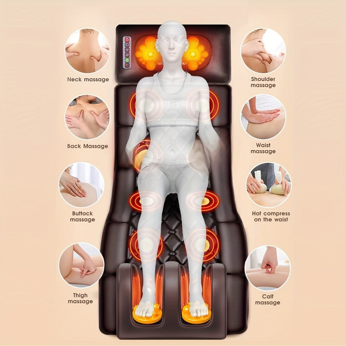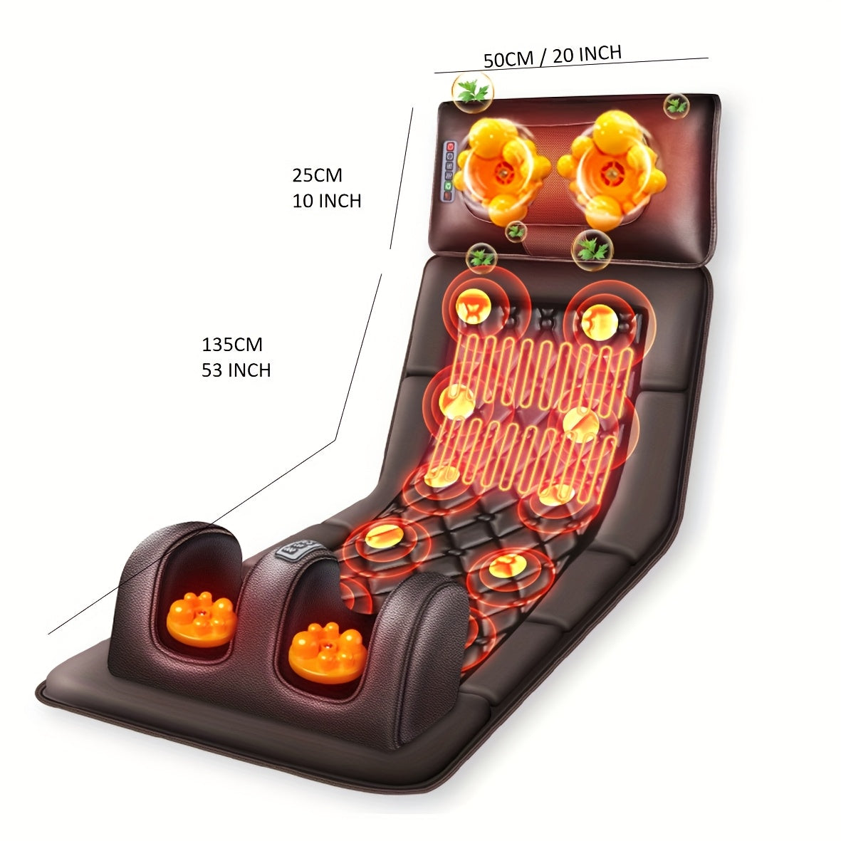 Enjoy total relaxation with this full-body massage pad, designed to target key pressure points from shoulders to feet. Crafted from soft polyurethane fabric and equipped with a removable neck massage pillow, it delivers soothing warmth and full coverage massage in a foldable, easy-to-store design.