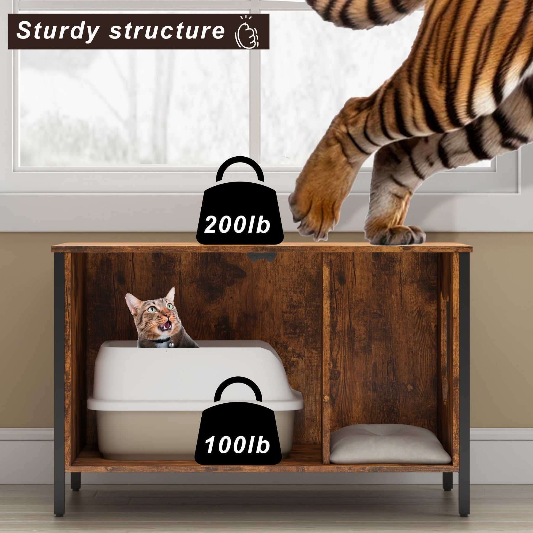 Hidden Cat Litter Box Enclosure with Removable Divider.