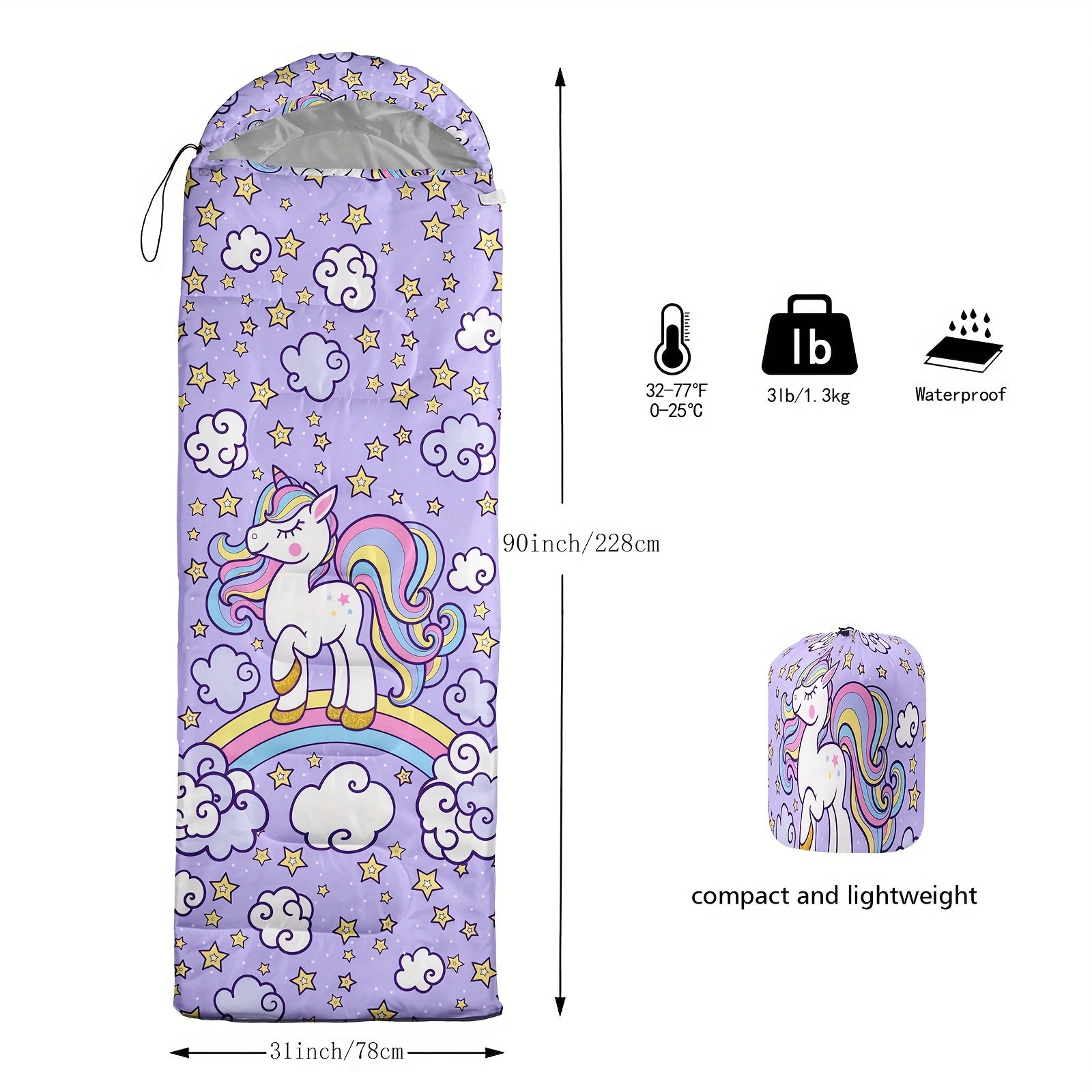 Kid's Lightweight Unicorn Sleeping Bag, Waterproof Portable Cold Weather Car Sleeping Bags for Camping Backpacking Outdoor Indoor with Compression Sack