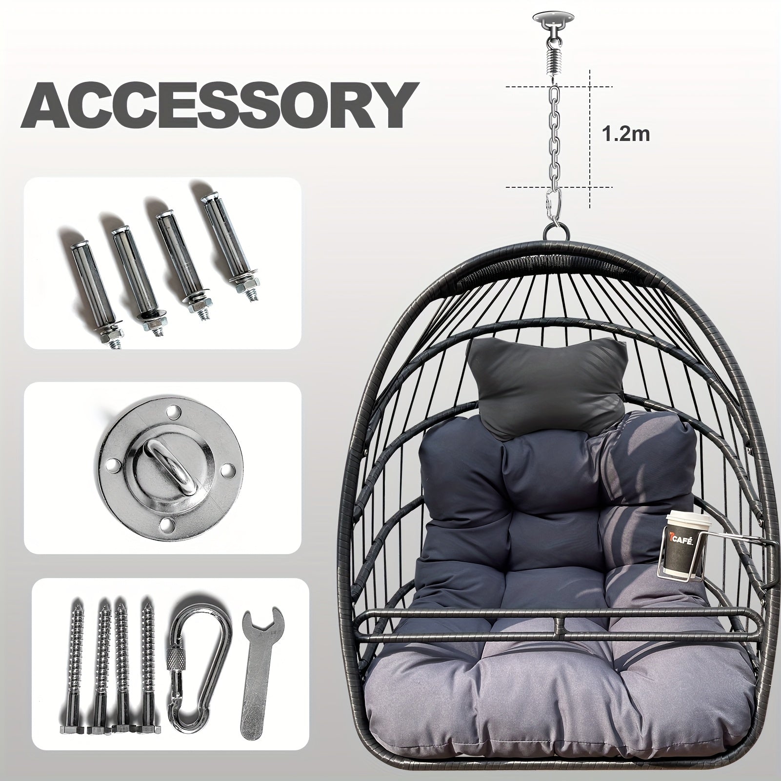 Swing Hammock Egg Basket Chairs Without Stand Outdoor, UV Resistant Cushion Hanging Chair, Foldable Frame 350lbs Capacity Ceiling Hammock Chair for Patio Porch Backyard Balcony