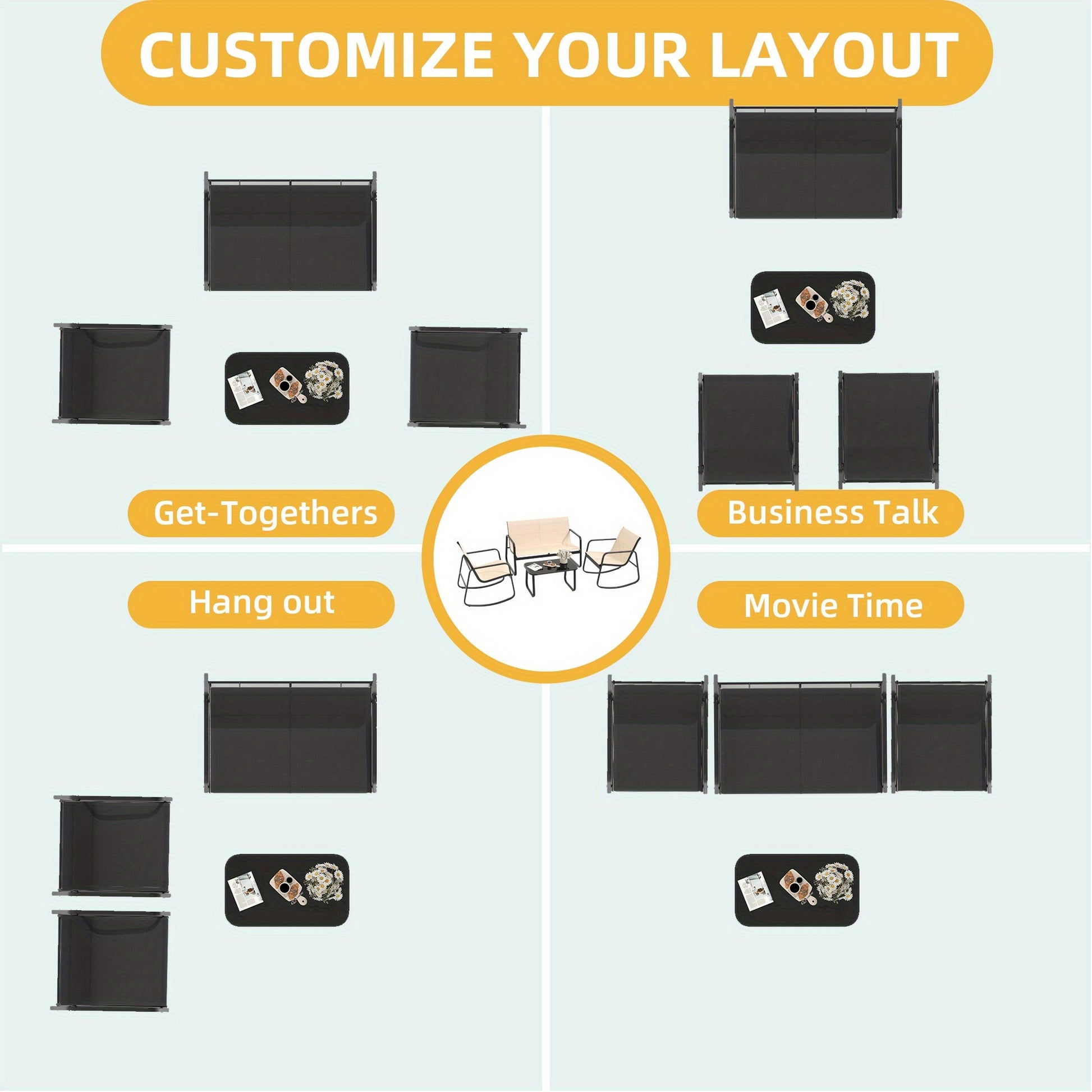 Enhance your outdoor space with this elegant and durable 4-piece patio bistro set, designed for comfort and relaxation. Whether placed in your garden, backyard, balcony, or poolside, this set offers both style and functionality.