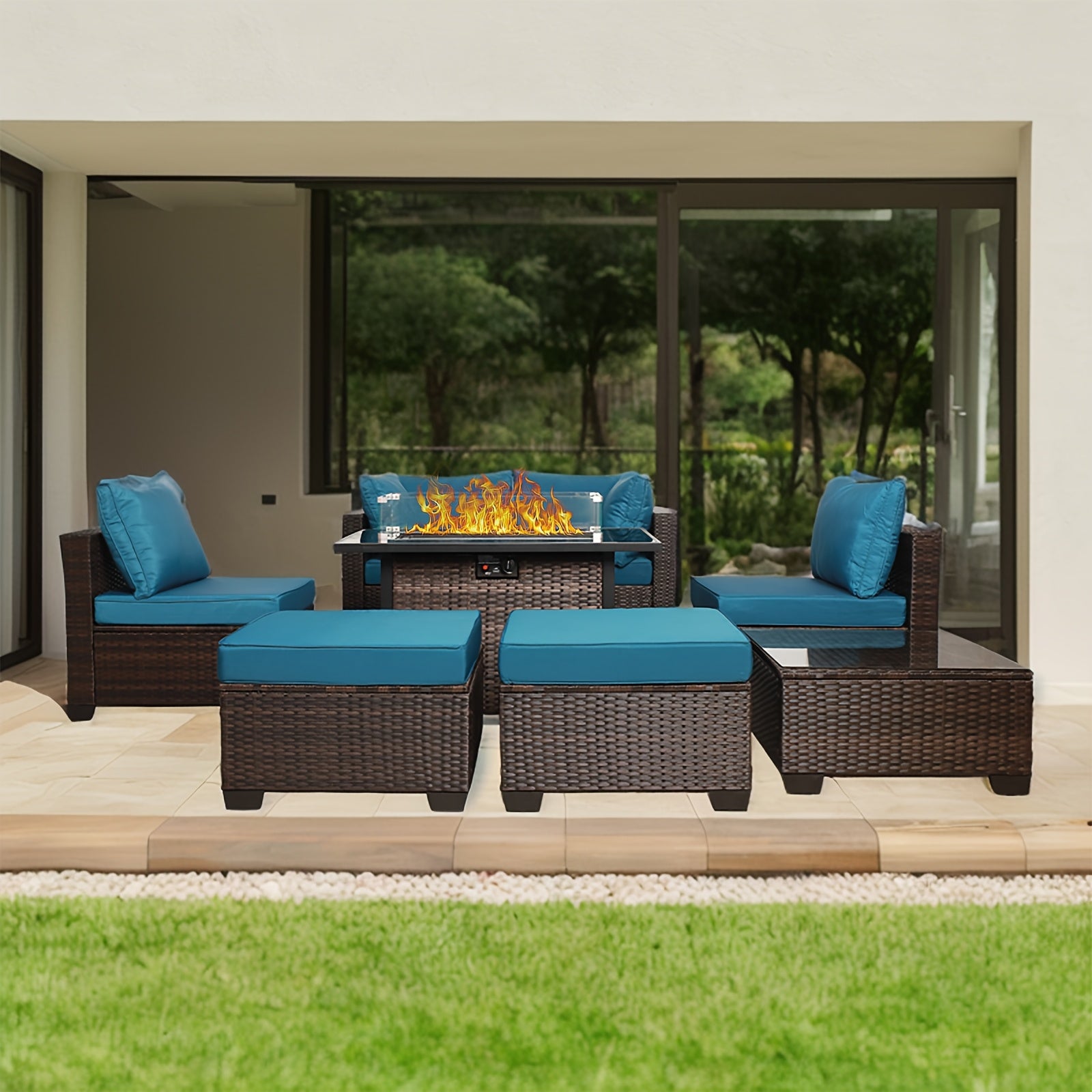 Transform your outdoor space with this stylish 8-piece patio furniture set, complete with a 44-inch propane gas fire pit table. Designed for comfort and durability, the sectional rattan pieces provide ample seating while the integrated fire pit adds warmth and ambiance, making it perfect for relaxing evenings or entertaining guests.