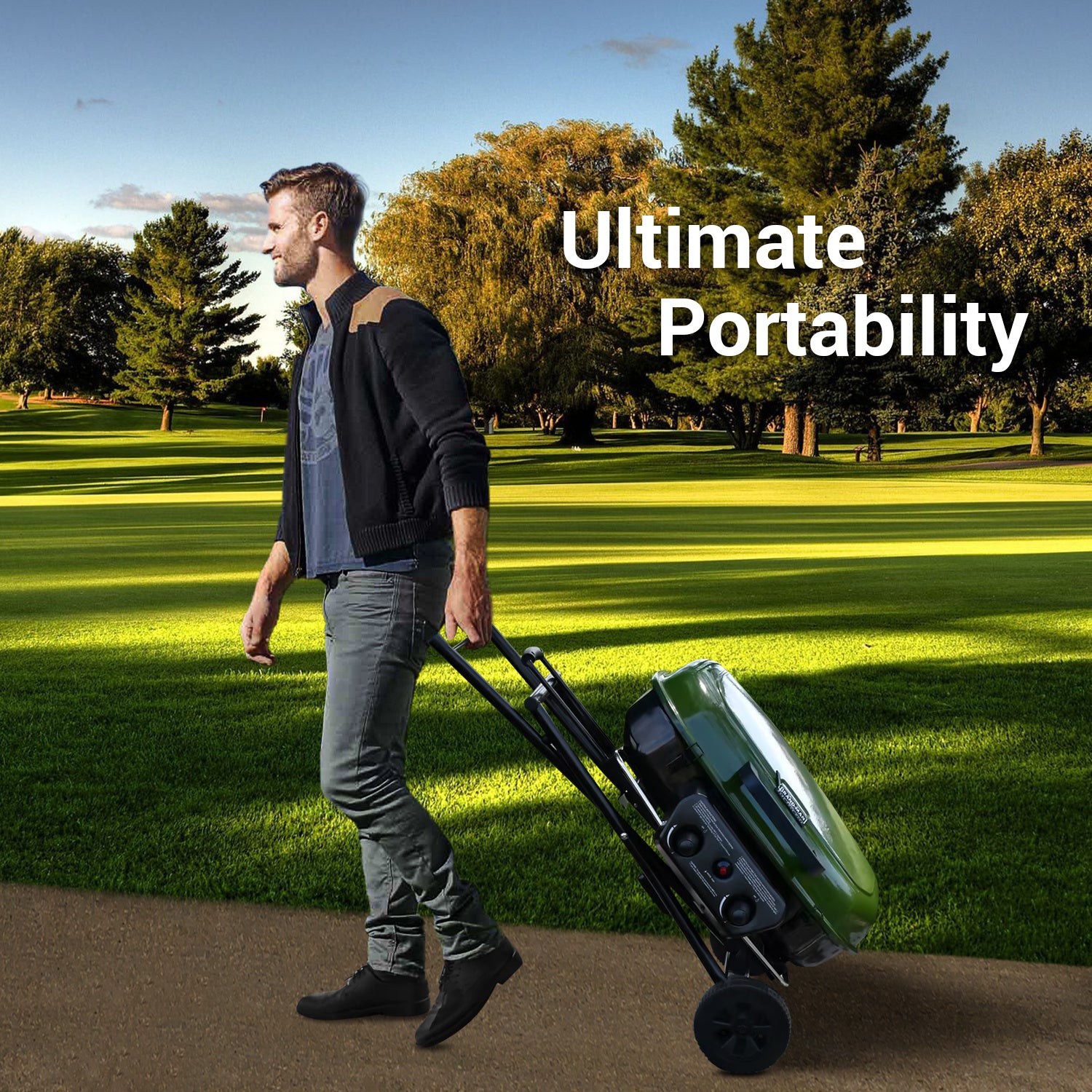 Portable 2 Burner Gas Grill with Cast Iron Grates and Foldable Stand