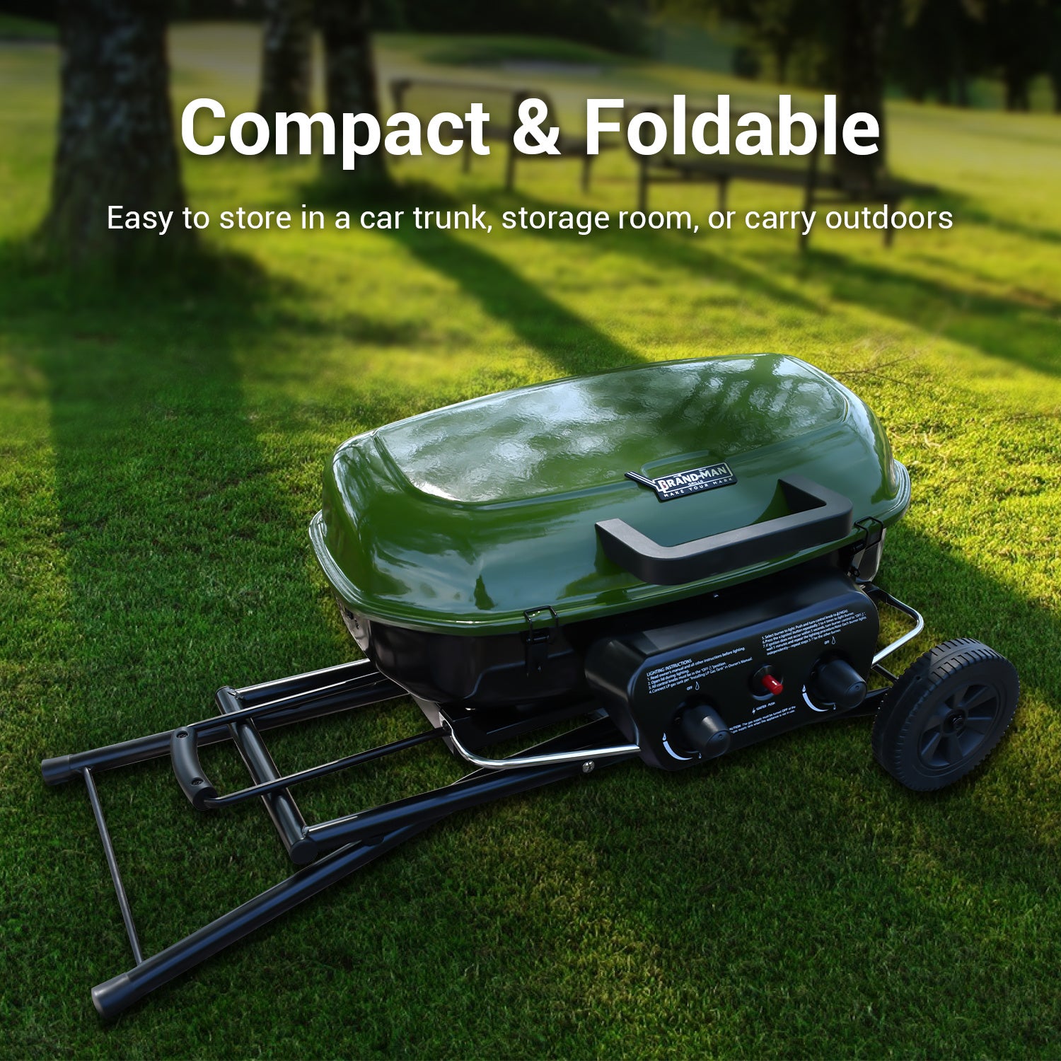 Brand-Man 2-Burner Propane Grill, Portable Stand-Up Gas Grill for Camping, Tailgating, BBQ, Parties, Backyard, Patio & More BRANDMAN GRILLS SINCE 1987