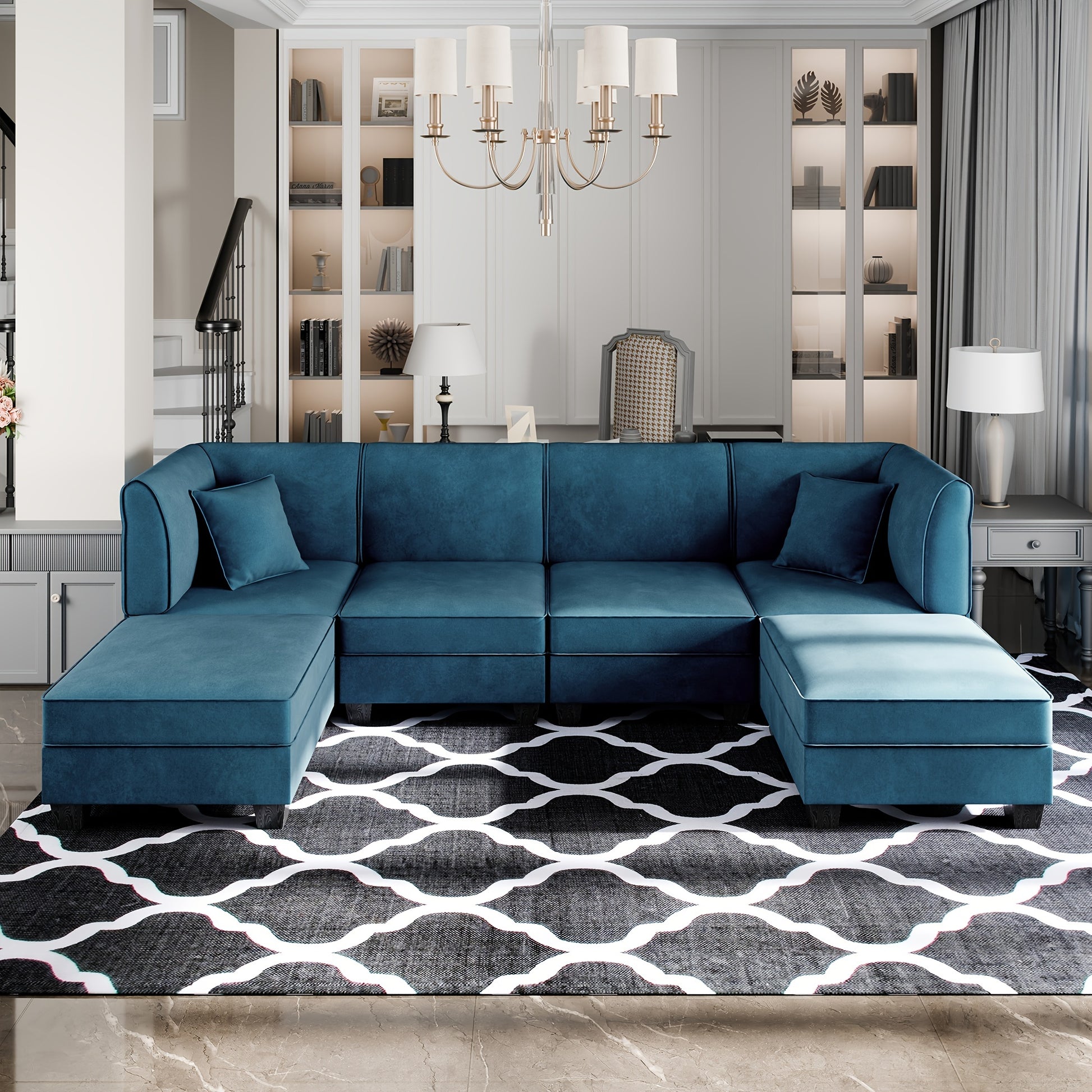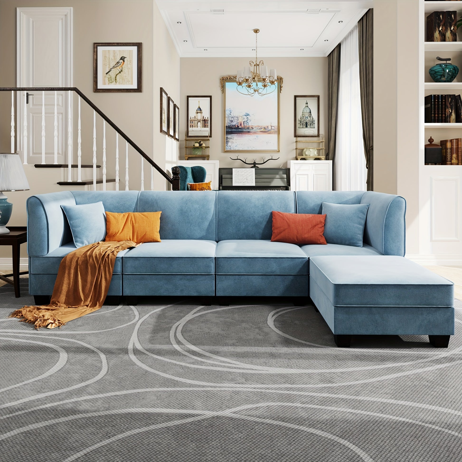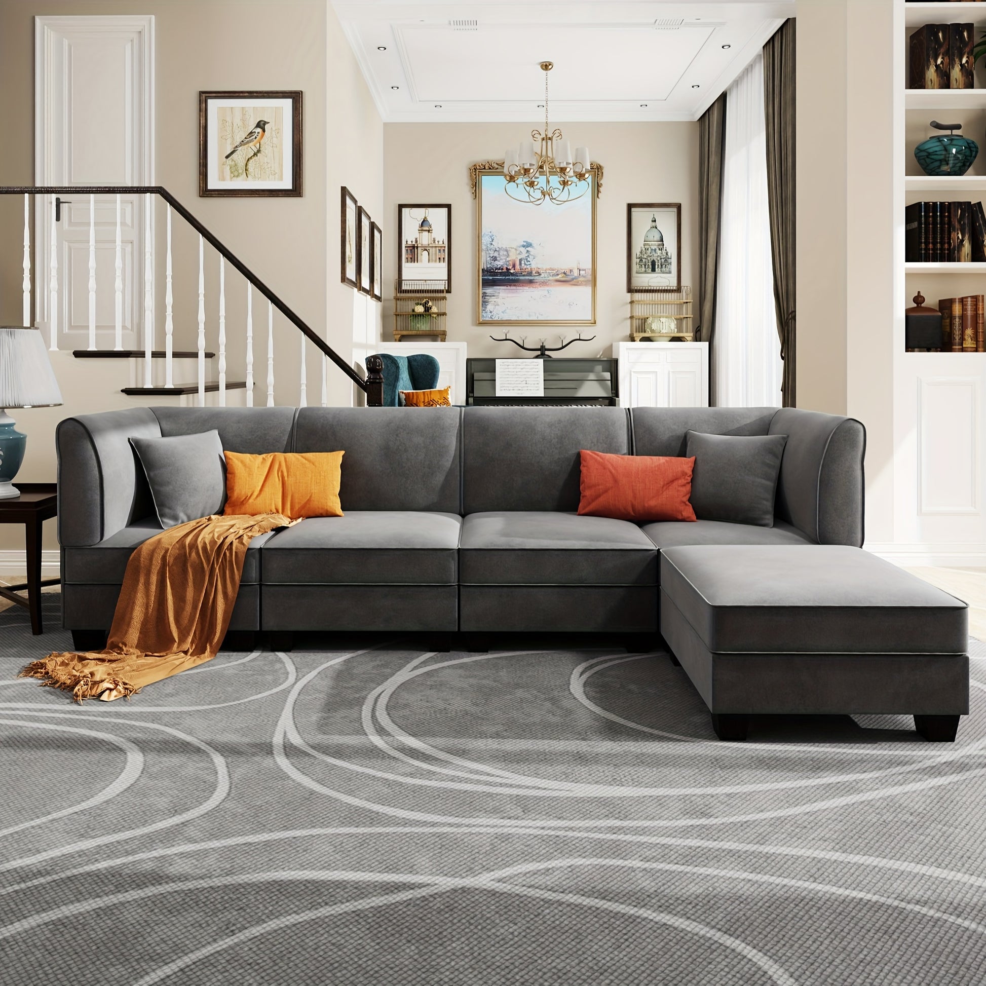 Enhance your living space with this luxurious reversible modular sectional sofa. Designed for comfort and versatility, this U-shaped velvet sofa set features plush memory foam filling for superior support. The ergonomic design ensures a relaxing seating experience, while the included ottoman provides additional functionality. Crafted with a sturdy wooden frame, this sectional is built to last, making it a perfect addition to any modern living room.