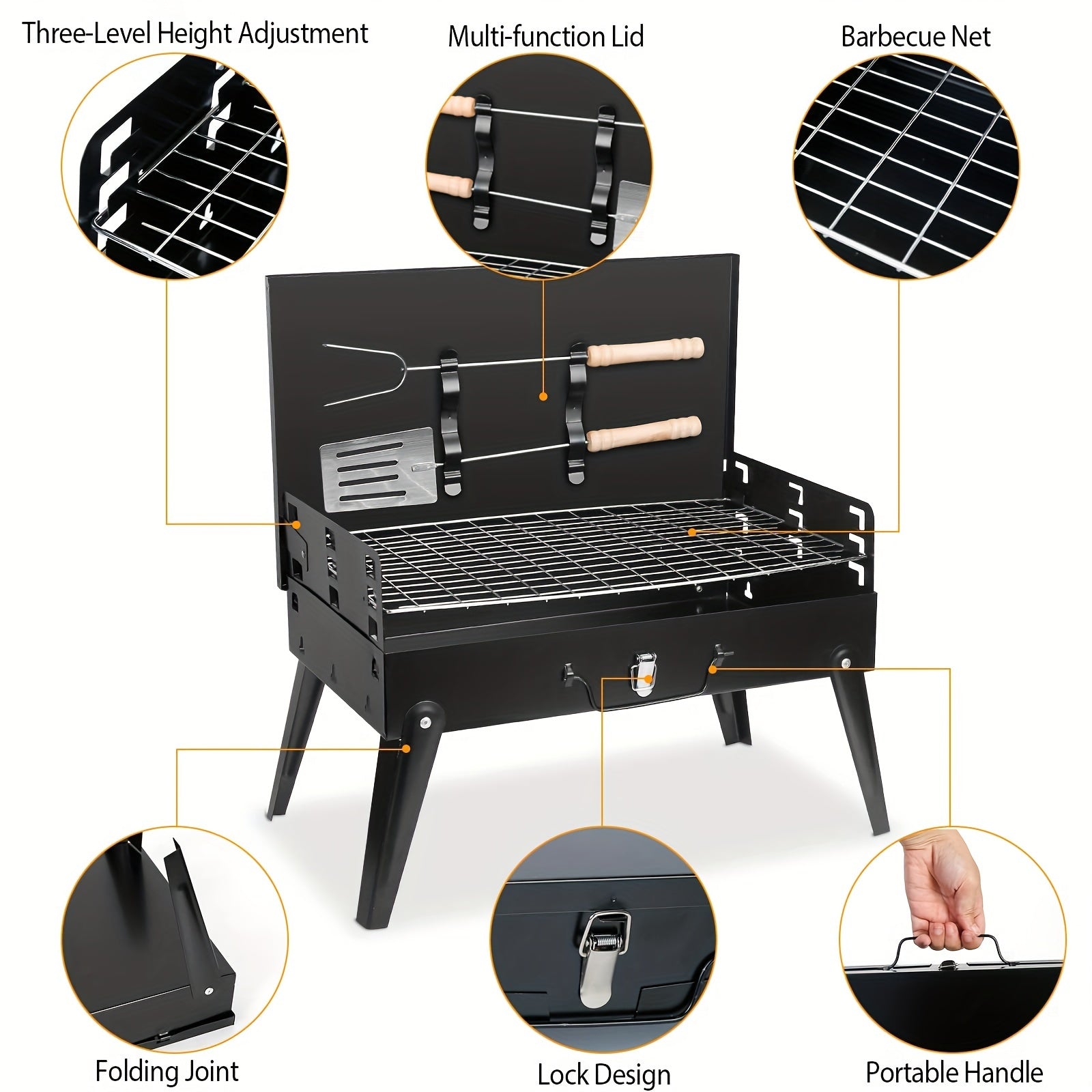 Small Portable Charcoal Grill, Folding BBQ Grill Outdoor with Barbecue Accessories, Lid for Camping Picnic Outdoor Cooking