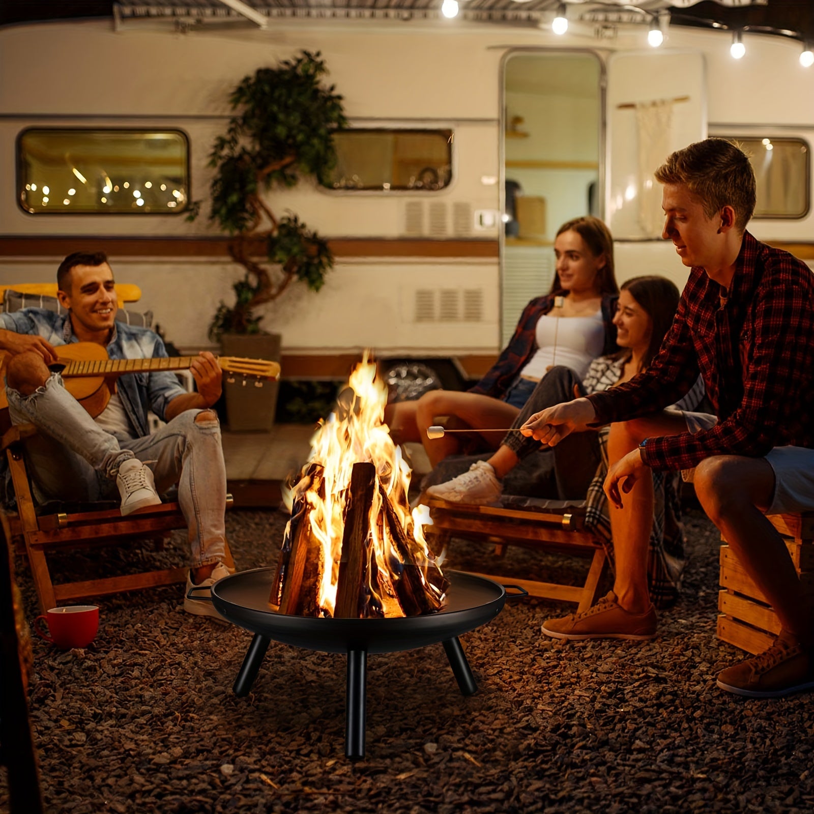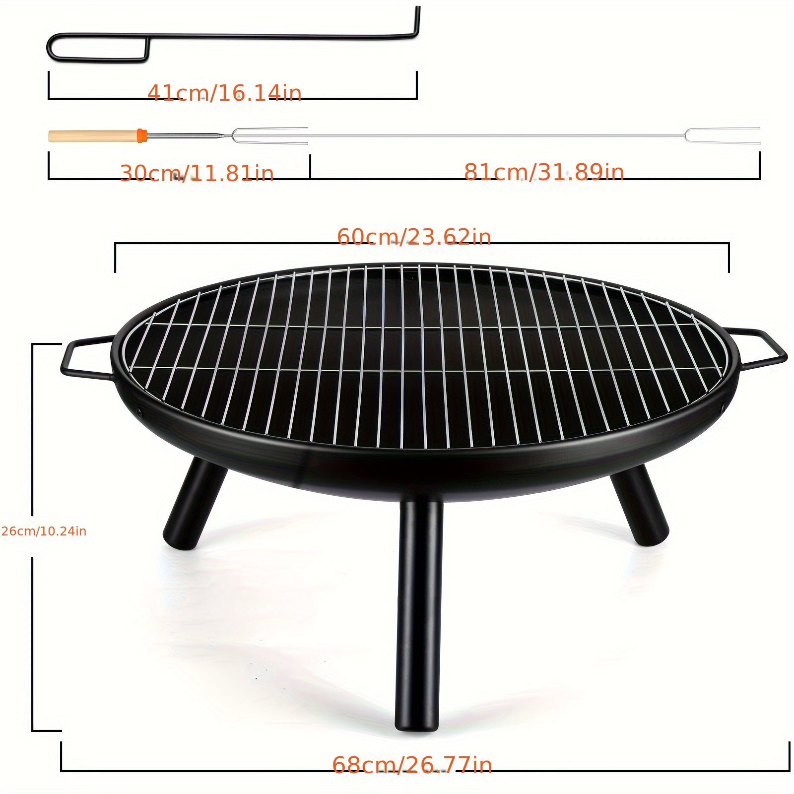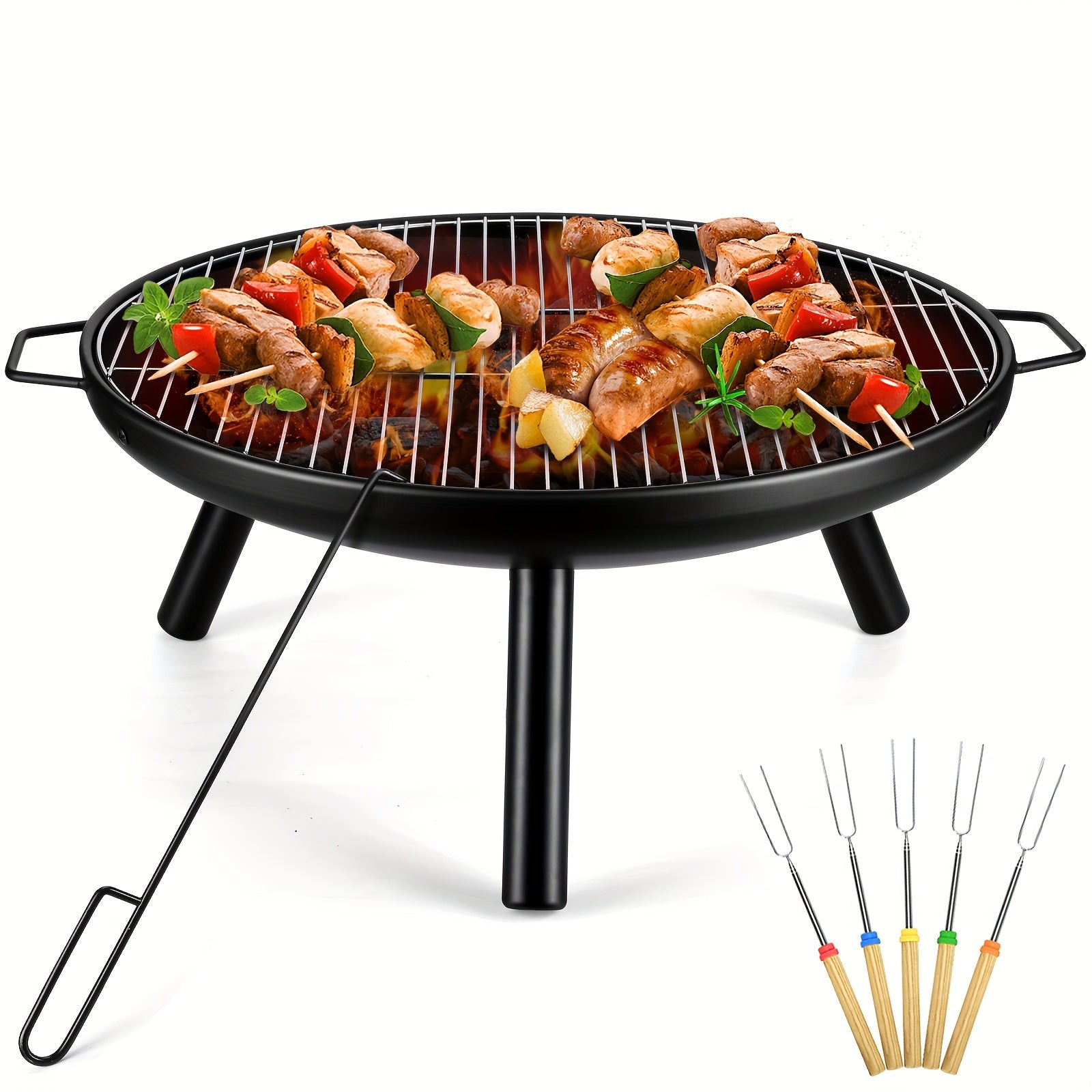 Steel Fire Bowl with Grill and 5 BBQ Skewers - Versatile Outdoor Fire Pit for BBQ, Camping, and Garden Picnics - Charcoal and Wood Burner