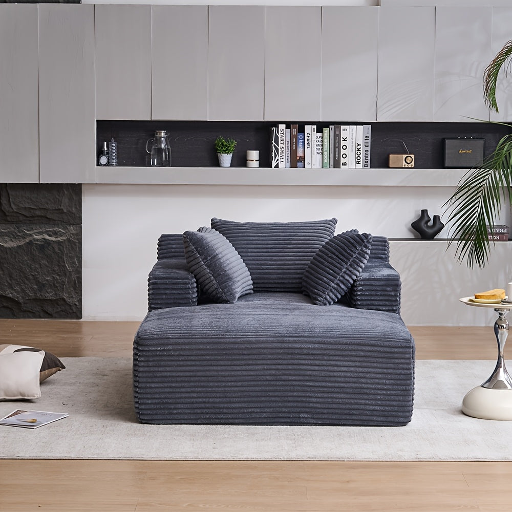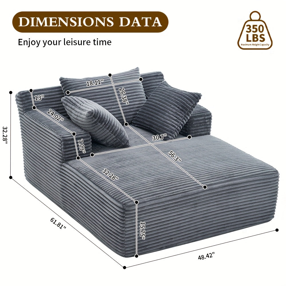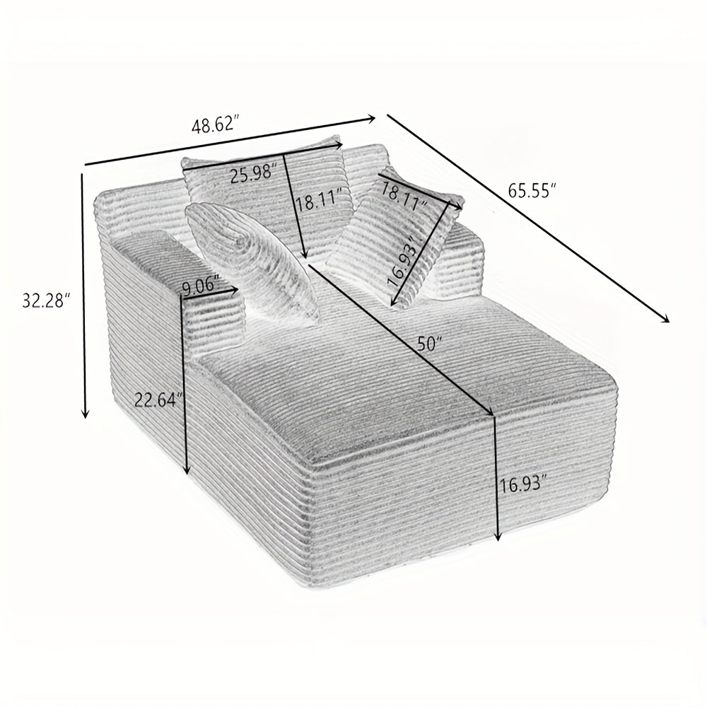Oversized 48, 62-inch Chaise Longue Chair | Modern Upholstered Corduroy Deep Seat Sofa Bed With Throw Pillows And Armrests, Sleeper Sofa Couch For Living Room, Bedroom Apartment [Modern Chaise Longue Chair]
