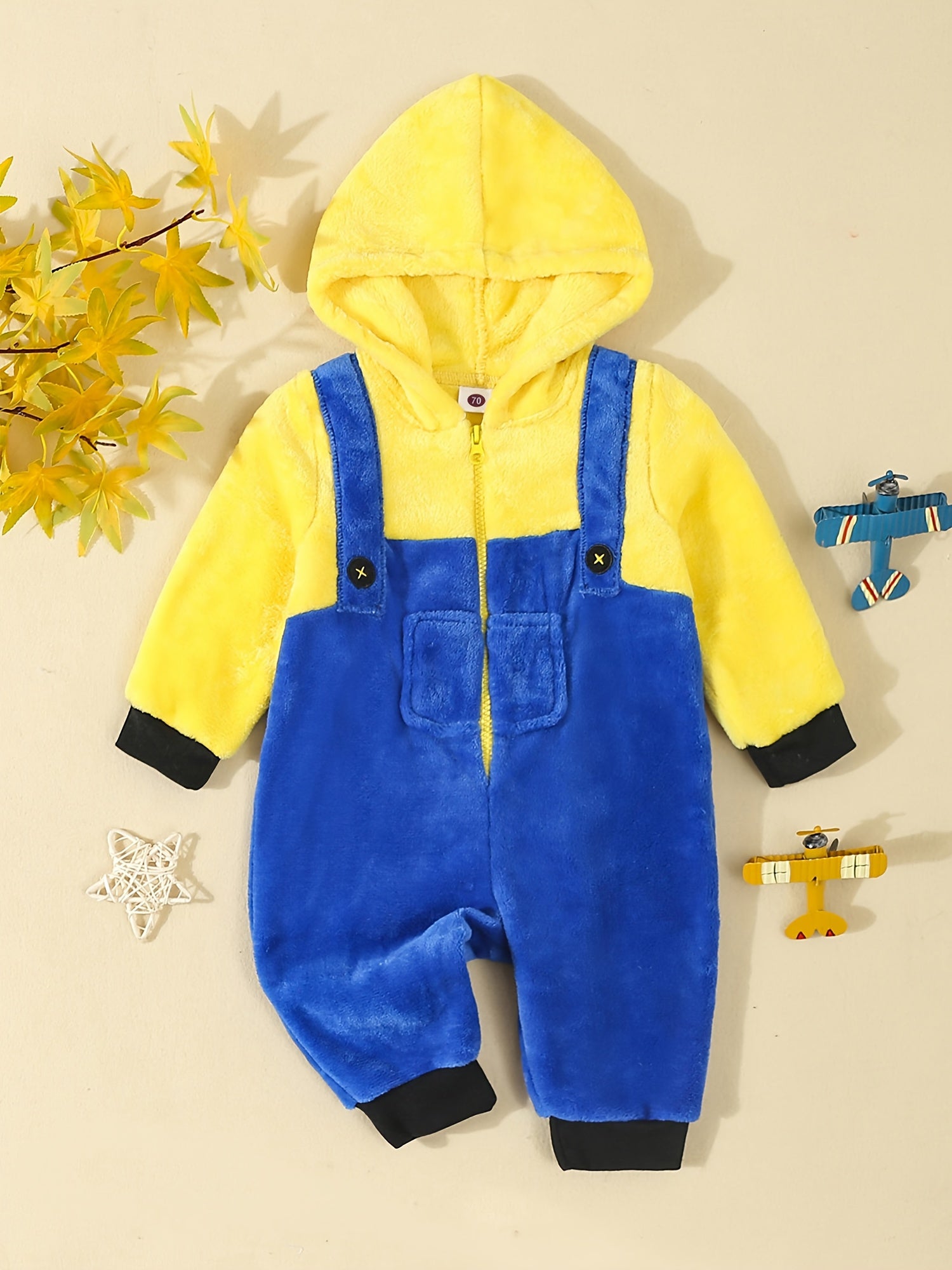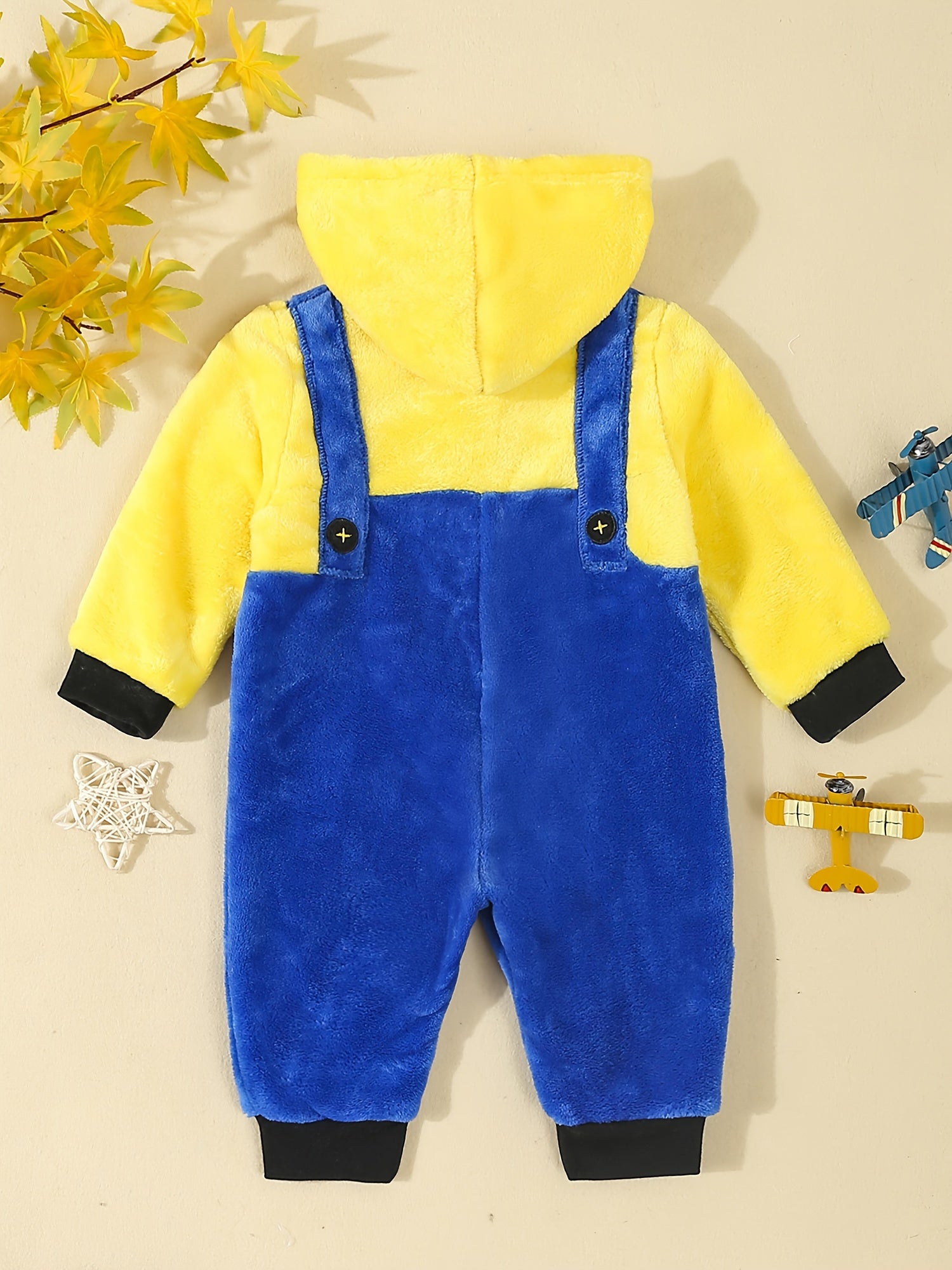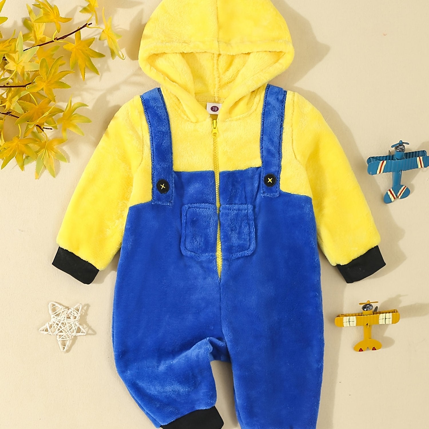 Unisex Fleece Hooded Romper Winter Outwear Jumpsuit Snowsuit Full Length Zipper Romper with Hood for Fall Winter