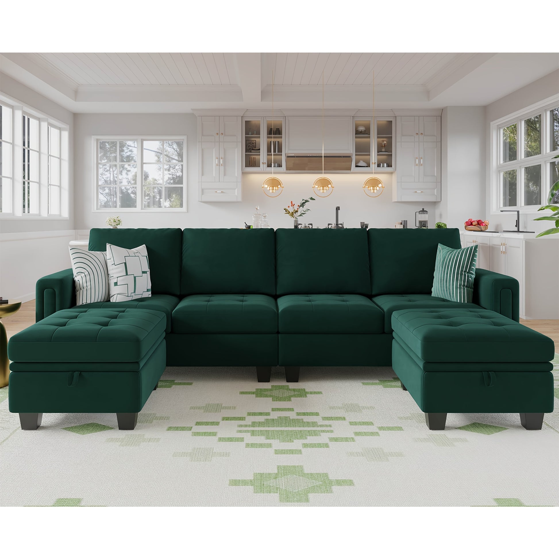 Velvet U-Shaped Convertible Sectional Sofa with Storage Ottomans