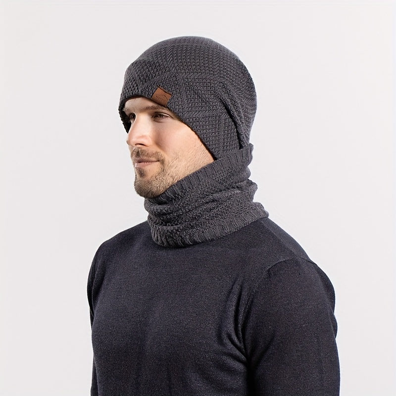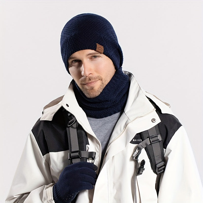 3 piece winter warm hat, gloves, scarf, Winter men's outdoor winterproof and velvet knit wool hat, suitable for outdoor sports and cycling, perfect gift, Christmas gift