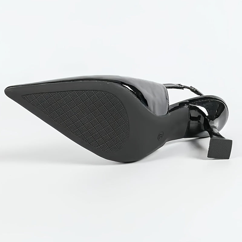 Make a bold statement with these sleek and sexy pointed-toe stiletto heels. Designed with glossy black uppers and delicate strap detailing, these shoes deliver the perfect balance of elegance and allure for banquets, dates, and upscale occasions.