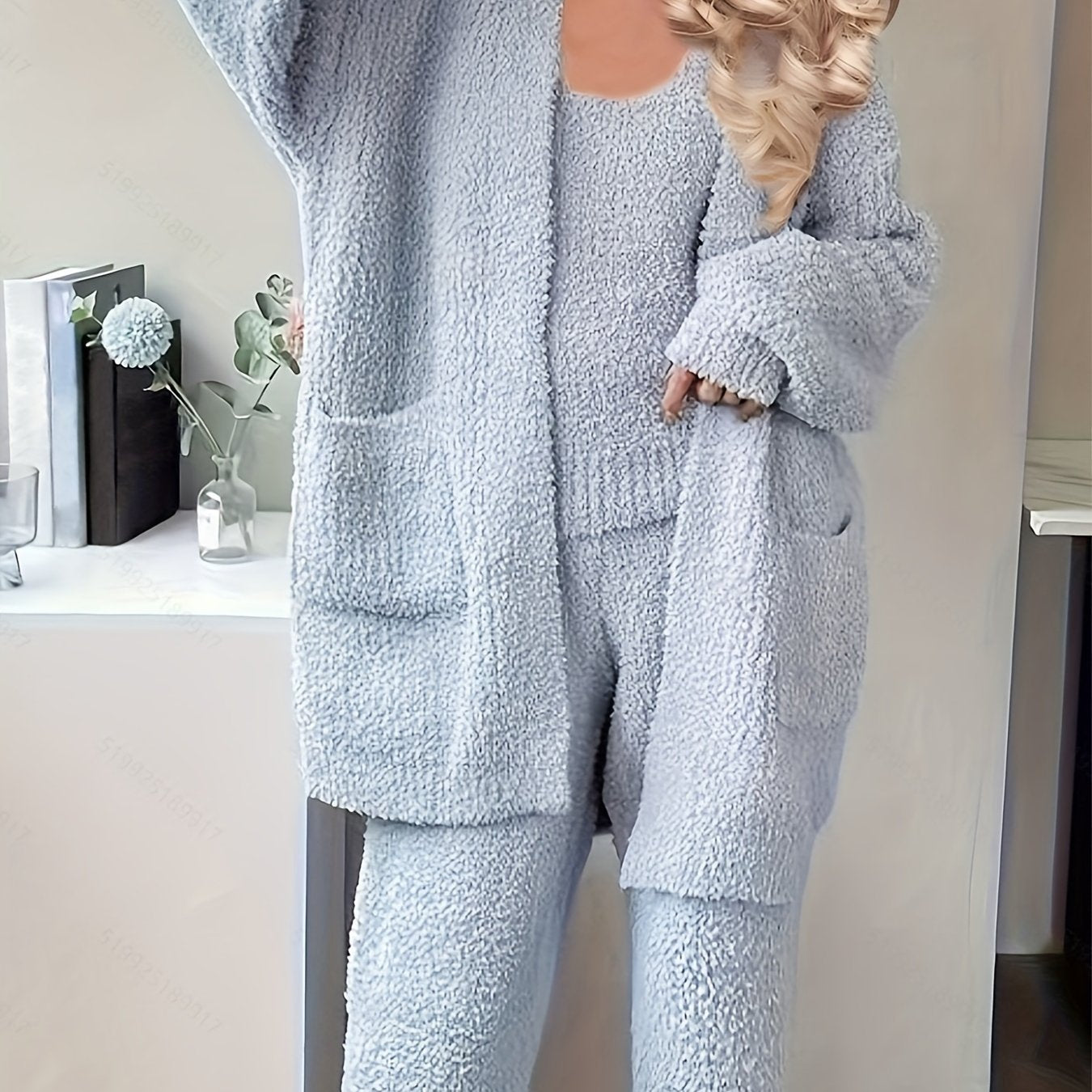 Women's Cozy Loungewear Set - V-Neck, Long Pants, Casual Style, Fall/Winter Collection