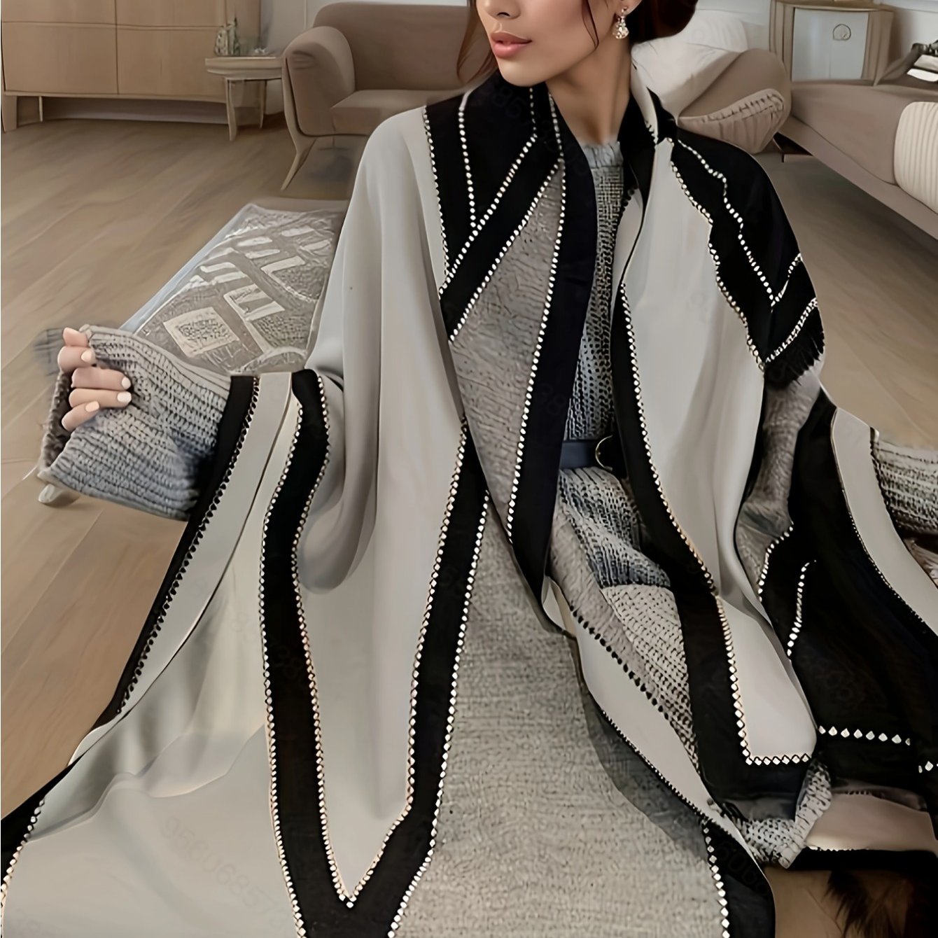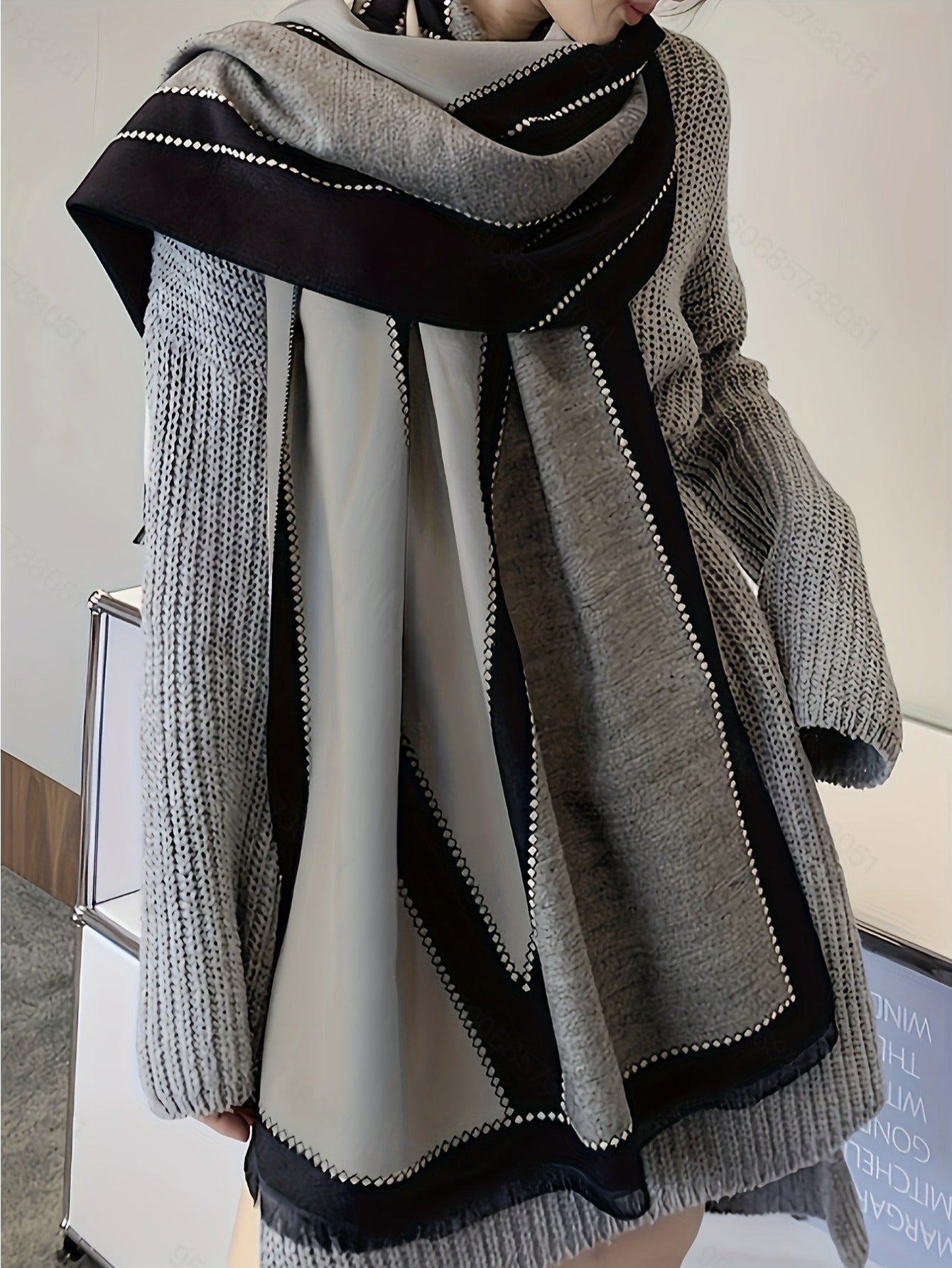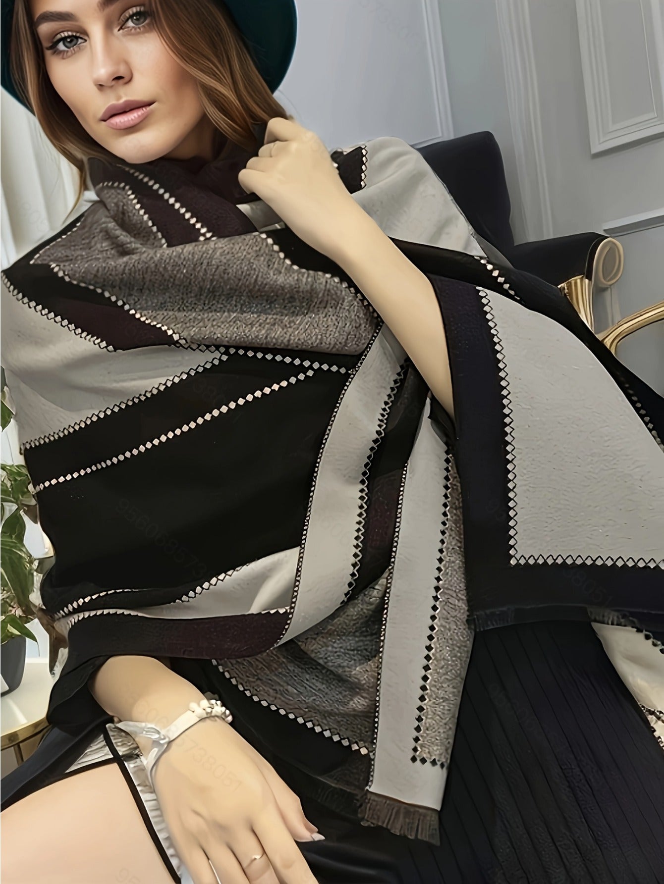 Women's Plus-Size - Large geometric pattern scarf, soft and comfortable color block linen shawl, suitable for autumn and winter, women's plus-size clothing