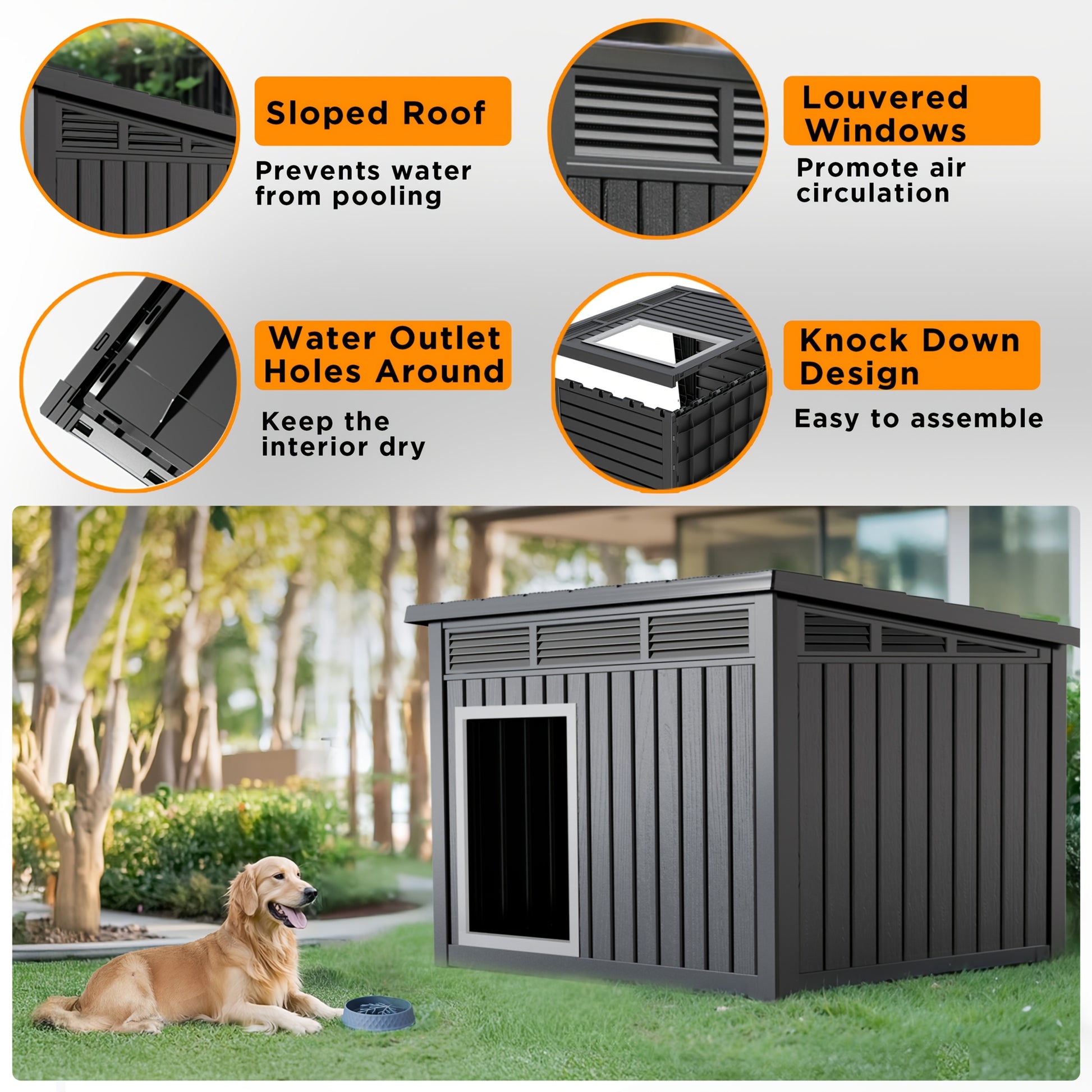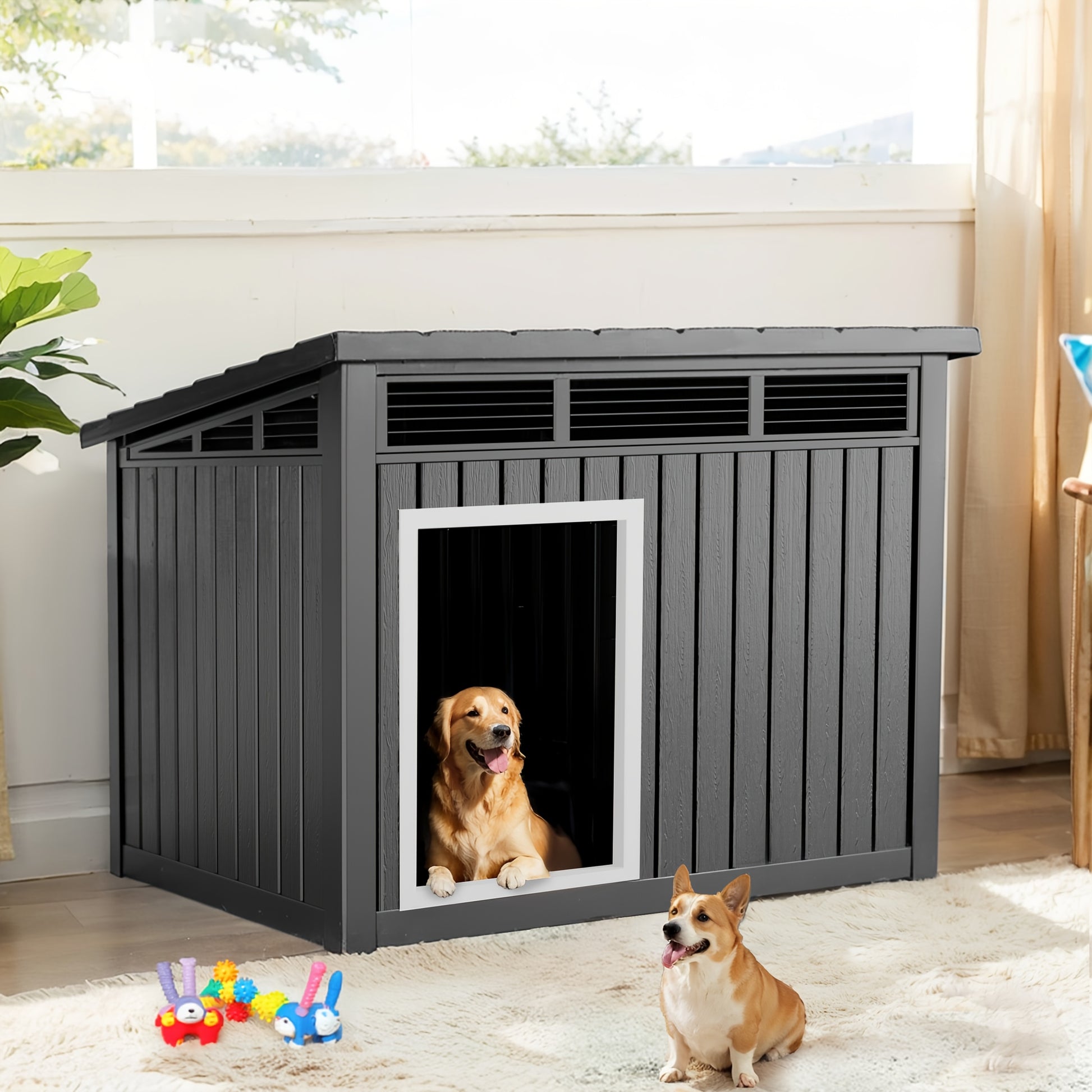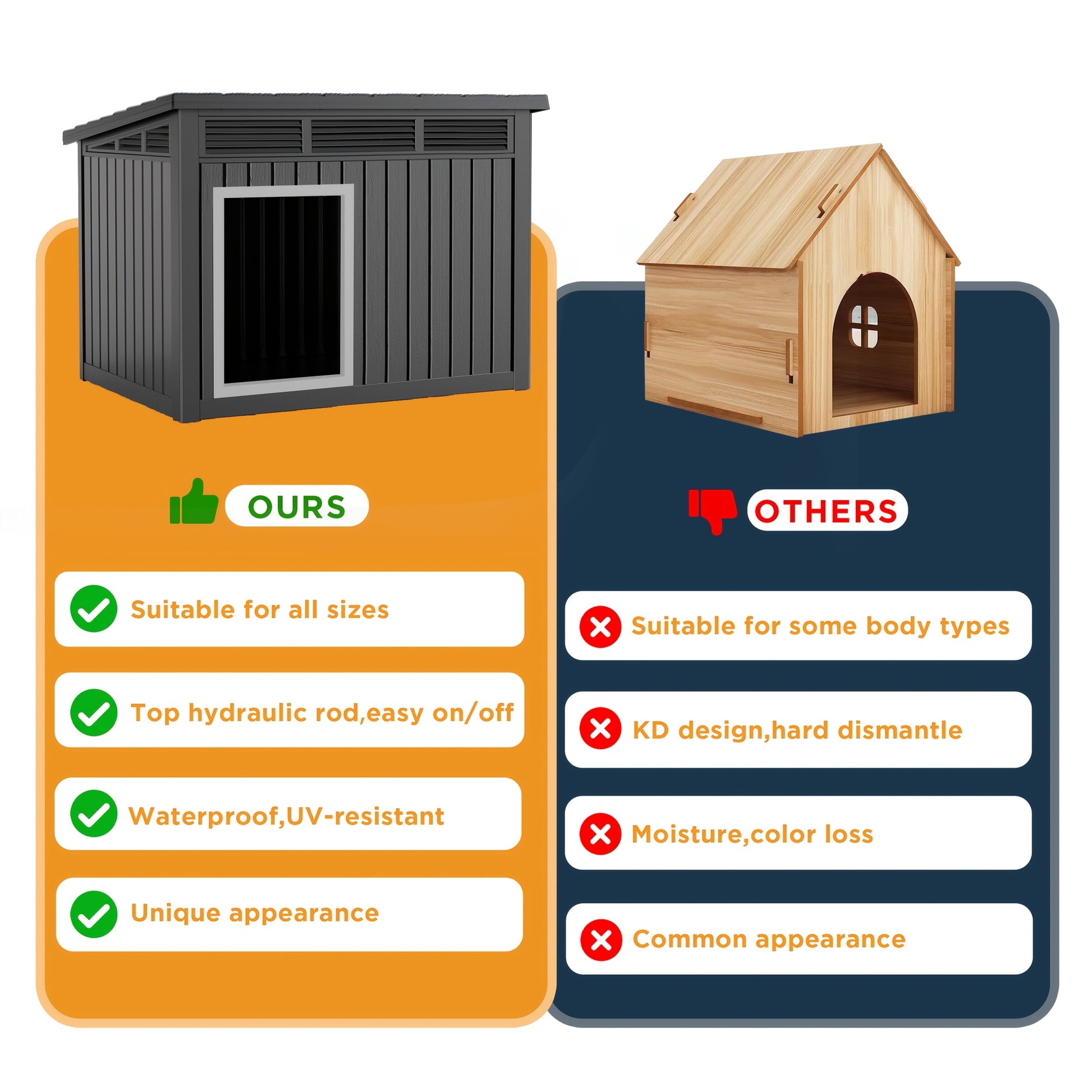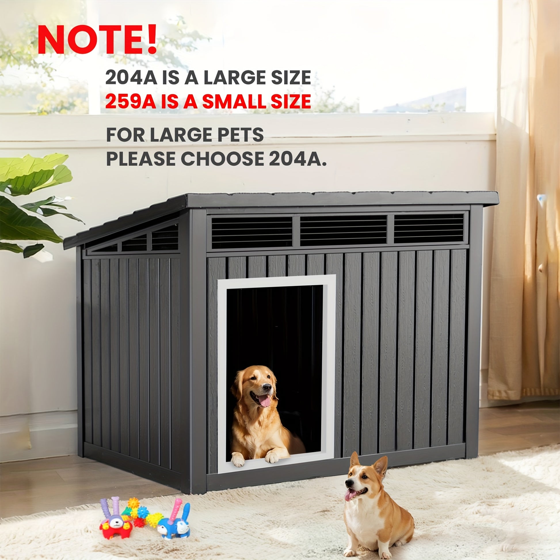Multiple models of resin dog kennels (42.9*32.9*31.61INCH and 32.2*25.2*24.2INCH) - windproof, rainproof and UV-resistant, removable and breathable top cover, quick assembly, suitable for indoor and outdoor use, suitable for large dogs and multi-pet households!